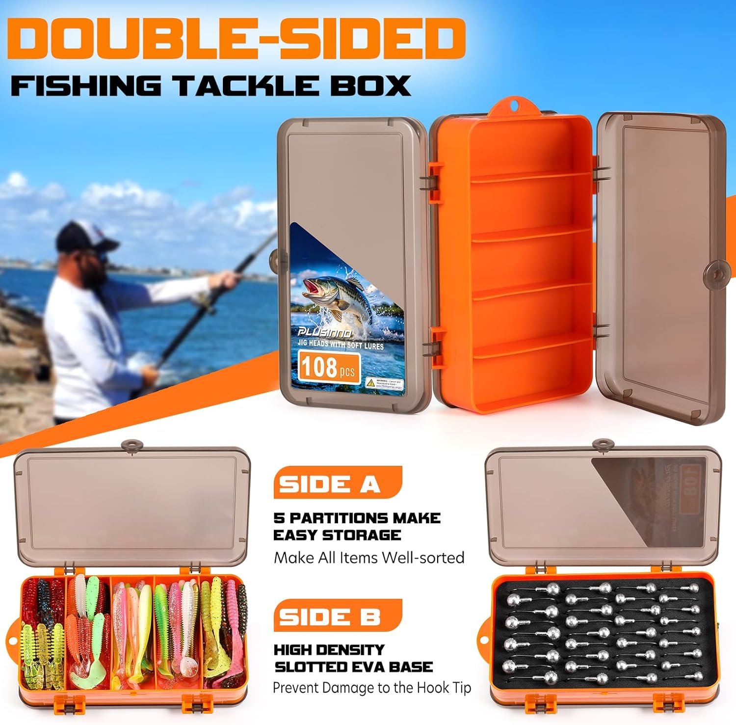 PLUSINNO Señuelos de pesca, caja de aparejos de 108 piezas c