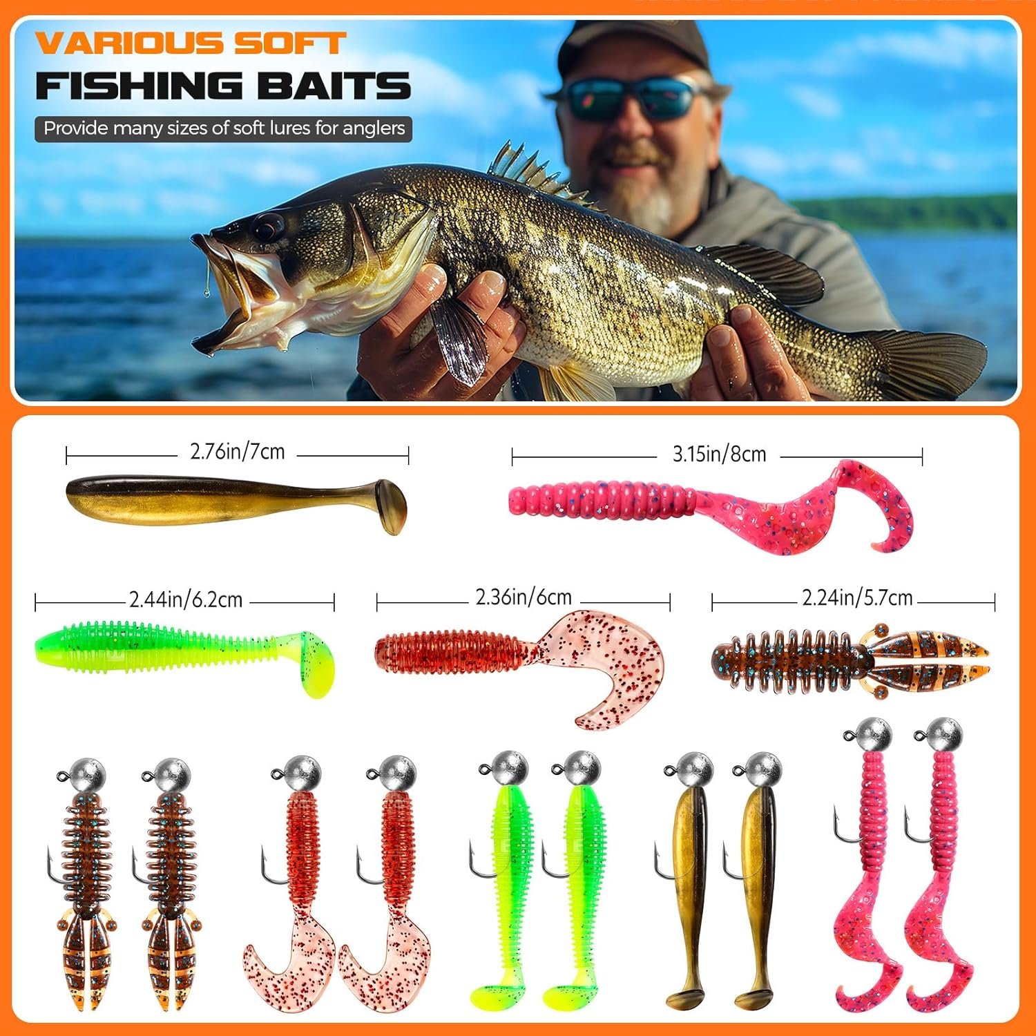 Kit esencial de señuelos de pesca con caja de aparejos: la caja de aparejos PLUSINNO de 108 piezas con aparejos incluidos viene con todo lo que necesitas: 28 señuelos de pesca suaves de cola de pala, 34 señuelos de gusanos suaves, 10 señuelos flotantes de camarón y 36 cabezas de plantilla redondas. Todo el equipo de pesca es compacto en una caja de aparejos de pesca de doble cara de 18,0 cm x 9,9 cm x 4,8 cm. Diseñado para la portabilidad, este kit de aparejos de pesca cabe sin esfuerzo en tu mochila de pesca o caja de asiento, por lo que es un compañero portátil para cada viaje de pesca. Señuelos de pesca versátiles con cabeza de plantilla: selecciona entre nuestros diversos pesos de ganchos de pesca (0.12 oz a 0.35 oz) para apuntar sin esfuerzo a los peces a cualquier profundidad. Con un cabezal de plantilla ideal para lanzar largo y hundimiento lento, nuestros señuelos de pesca te ayudarán a apuntar con precisión tu área de pesca deseada. Los anzuelos de pesca de cabeza completa permiten que estos suaves señuelos de pesca se hundan rápidamente en la zona de ataque. Los señuelos de crappie pueden crear una acción de natación más realista para atraer a más peces para morder. Varios señuelos de pesca suaves y realistas: la cola única en forma de paleta de los señuelos de pesca suaves crea una potente vibración que atrae a los peces en el agua, imitando el movimiento del pez cebo. Con el diseño de cola en espiral, los señuelos de gusanos producen un movimiento de aleteo irresistible, incluso a velocidades lentas, ideal para peces quisquillosos. Ya sea que estés pescando en aguas profundas, pisos poco profundos o cubierta pesada, estos señuelos de pesca te tienen cubierto y aumentan tus posibilidades de una captura exitosa. Caja de aparejos de pesca de alta calidad: la caja de aparejos compacta cuenta con un diseño de doble cara, que ofrece un almacenamiento eficiente tanto para señuelos de pesca como para cabezas de plantilla. Todos los accesorios de pesca son ampliamente utilizados y cuidadosamente seleccionados, que están hechos de material de alta calidad y capaces de soportar la fuerte picadura de peces agresivos. Gancho de cabeza afilado de alta calidad para una mejor penetración, lo que ayuda a atrapar más peces en todas las condiciones de agua y no te permitirá perderte ningún pez de caza grande utilizando nuestro kit de señuelos de crappie. Regalo perfecto de pesca para hombres: el kit de señuelos PLUSINNO se puede utilizar en diferentes métodos y técnicas de pesca, aumentando el disfrute y la tasa de éxito de la pesca. Este kit de pesca de lubina es eficaz y está diseñado específicamente para lubinas de agua dulce. Fácil de usar y amigable para principiantes, nuestro juego de equipo de pesca con caja de aparejos es un regalo de pesca ideal para padre, marido, novio y cualquier entusiasta. Especialmente adecuado para el día del padre, día de San Valentín, Acción de Gracias, Navidad, etc.