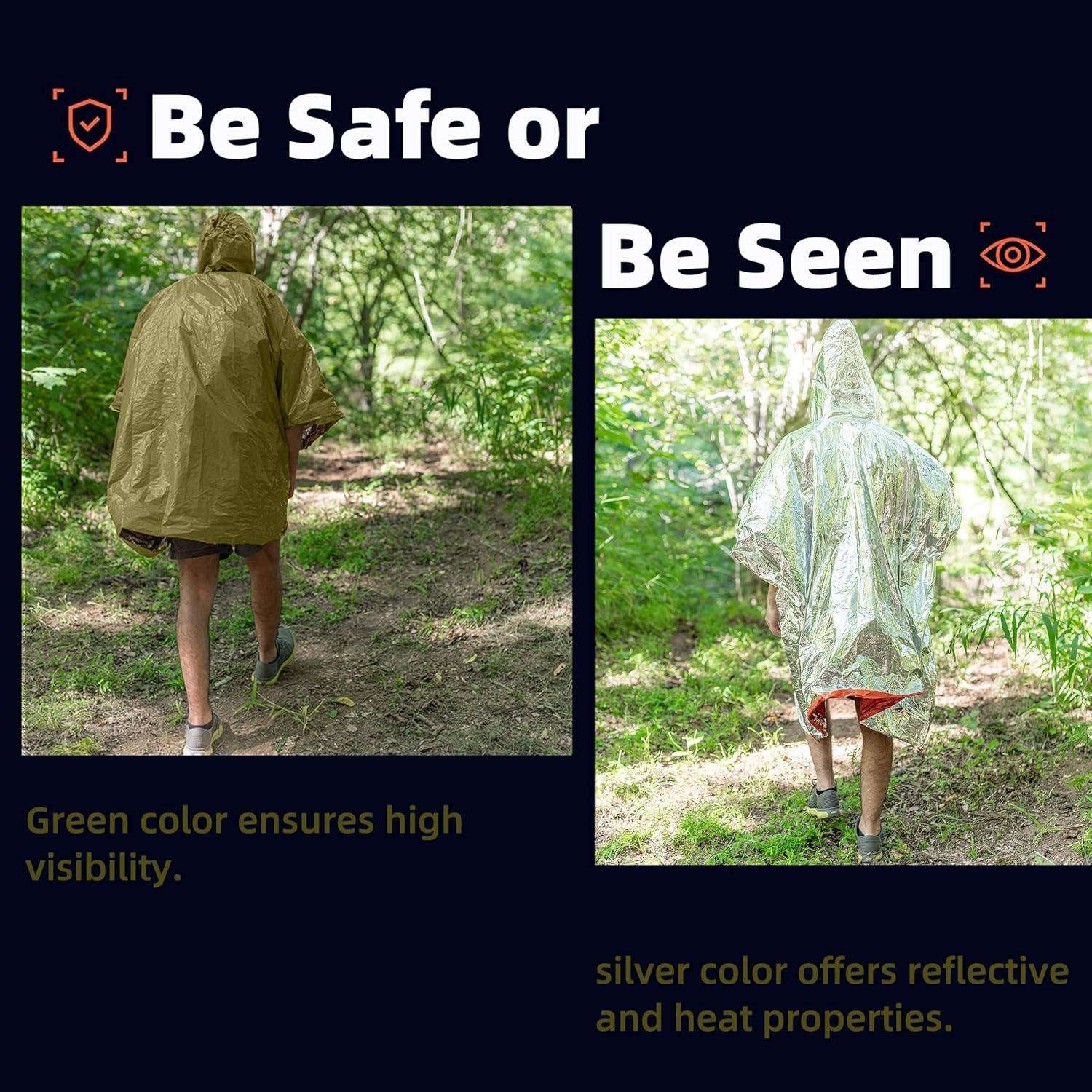TPU Importado 2 veces más gruesa que la manta de emergencia promedio: los ponchos de emergencia con capucha están hechos de mylar duradero, diseñado por la NASA, resistente a desgarros e increíblemente resistente, lo que los hace duraderos y duraderos, lo que te permite usarlos varias veces, manteniéndote seguro en una situación de supervivencia. Aislamiento térmico efectivo: RETIENE HASTA 92% DEL CALOR CORPORAL, gracias a su avanzado revestimiento térmico de lámina de mylar y tecnología Thermasave. Nuestro poncho de supervivencia está equipado con tecnología Thermasave para reflejar el 92% del calor corporal, evitando la hipotermia y los golpes, asegurando el calor durante las aventuras al aire libre. Diseño exclusivo: el poncho térmico de invierno está diseñado con doble cara, ofreciéndote más opciones de rescate cuando estás en peligro. El color naranja garantiza una alta visibilidad, mientras que el color plateado interior ofrece propiedades reflectantes y térmicas. El lado plateado se puede utilizar para protección solar y reflejo de señal para hacerte notar desde una larga distancia o durante la noche. Talla única: Nuestro poncho de lluvia de supervivencia mide 129,5 cm x 134,6 cm que se adapta a la mayoría de los cuerpos e incluso puedes colocar tu mochila debajo para mantenerlo seguro y seco. Además, el paquete mide solo 15,2 cm x 12,7 cm x 1,8 cm, pesa solo 0.14 libras, es pequeño, compacto y ligero, por lo que es fácil de almacenar en tu automóvil, bolsa o bolsillo, es ideal para aventuras al aire libre o emergencias. PREPARADO PARA CUALQUIER COSA: Nunca se sabe cuándo va a estar en un entorno de emergencia, especialmente en el desierto, así que asegúrese de meter este poncho de lluvia de viaje en su bolsa de insectos, perfecto para senderismo, camping, ciclismo, picnics, caminar, primeros auxilios, como equipo de supervivencia, equipo de salvamento, equipo de alpinismo, kits de evacuación.