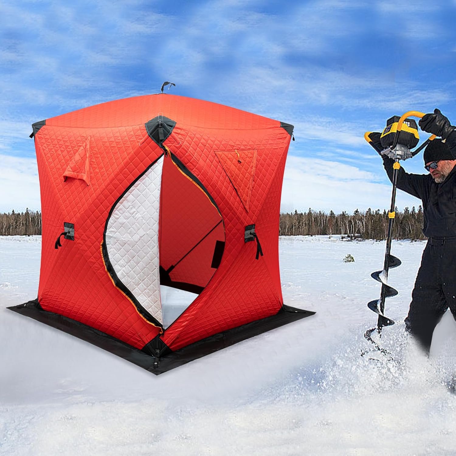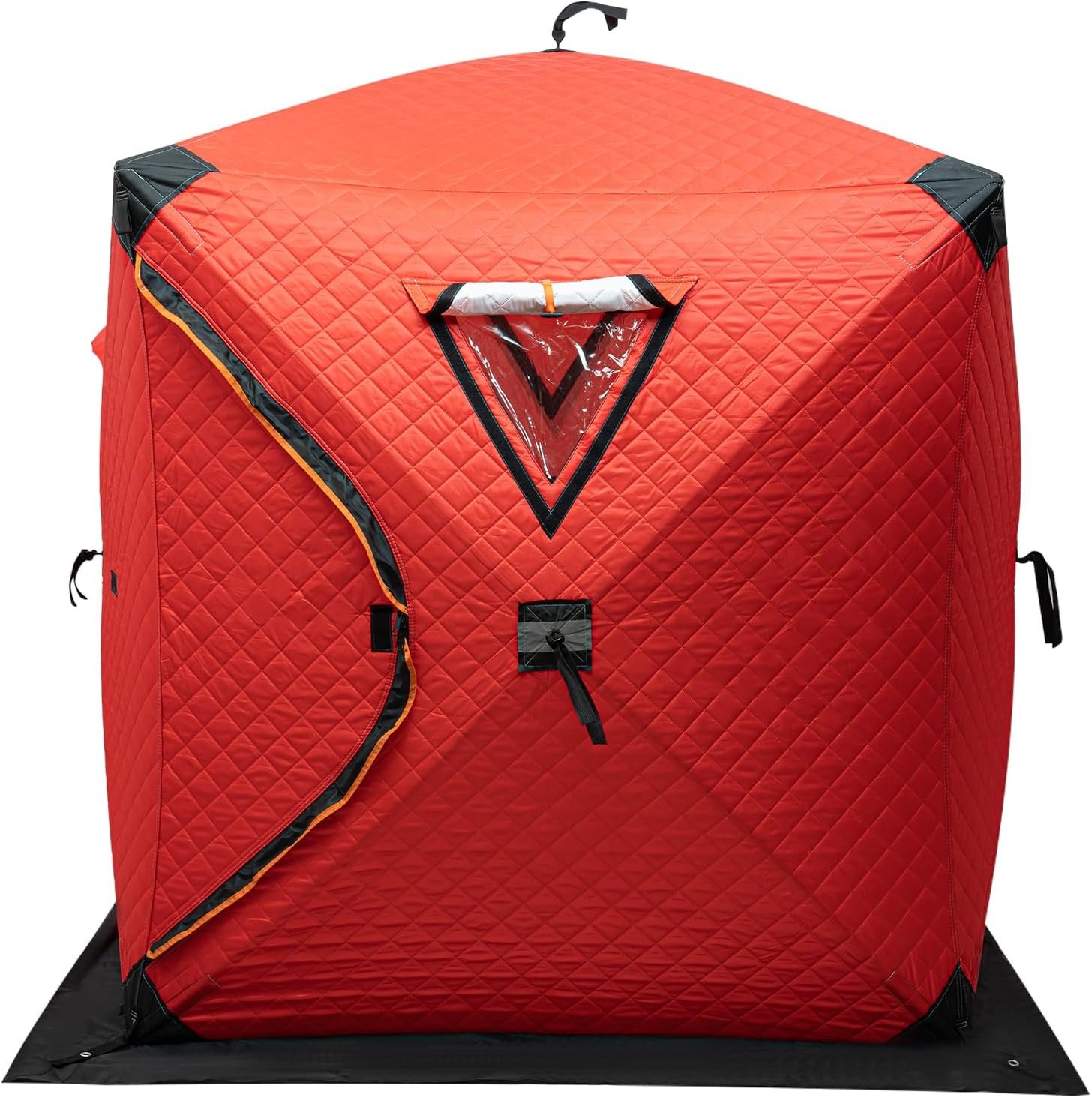 Portable Ice Fishing Tent Red, 2-3 Person Pop-Up Thermal She