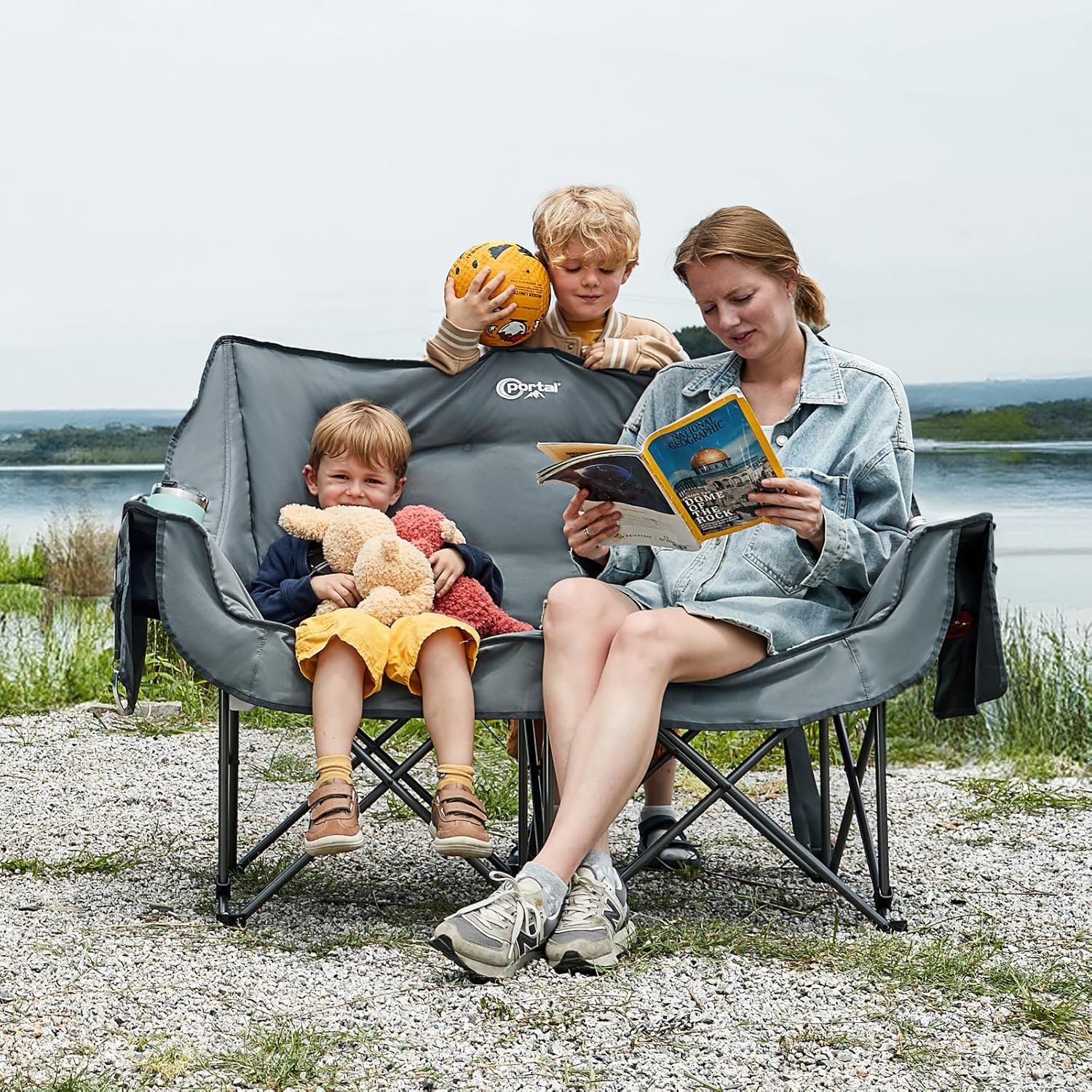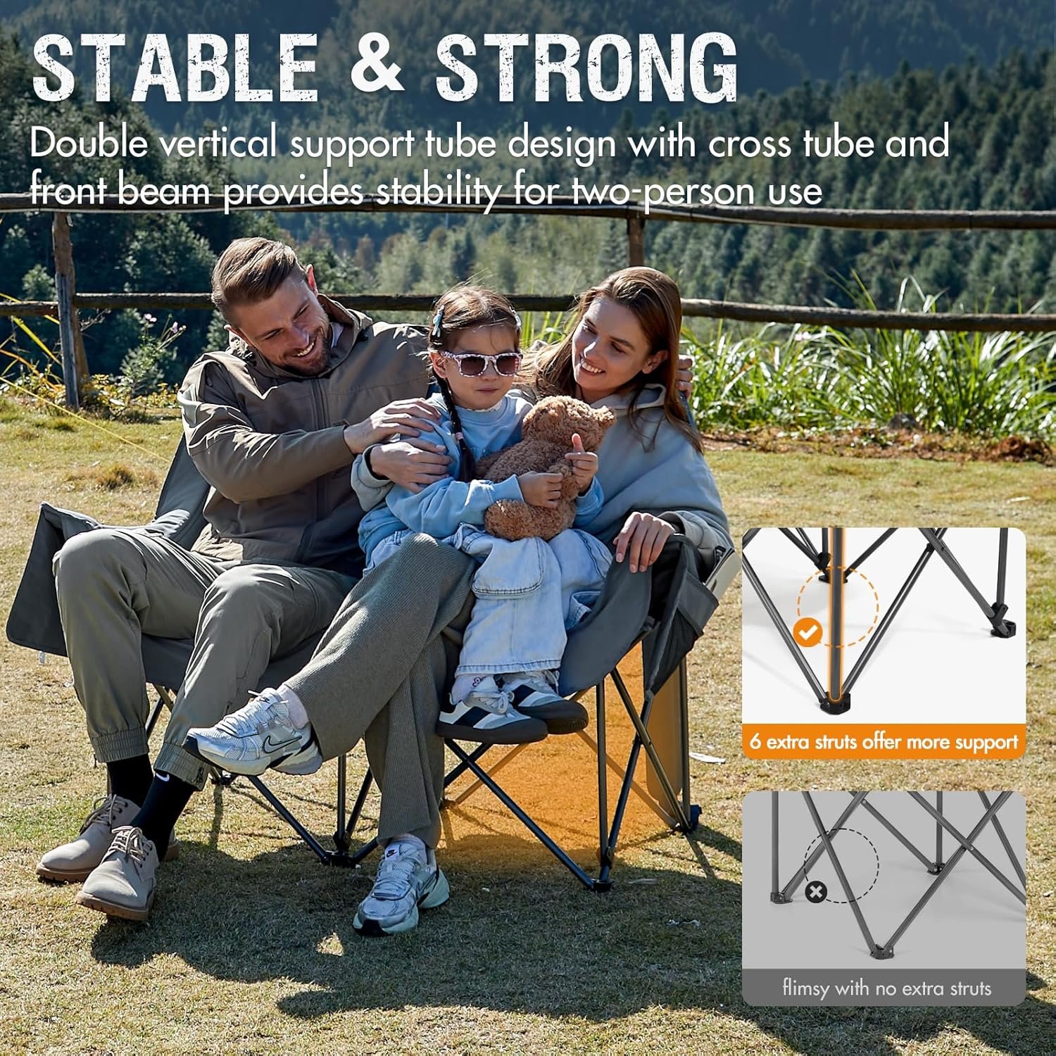 PORTAL Silla de campamento doble, sofá biplaza plegable para