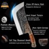 Carne Cleaver – Primero debes saber que este es un cuchillo forjado a mano con acero de alto carbono y acero de alto manganeso, el acero de alto carbono tiene una mejor capacidad para mantener los bordes afilados y mejora en gran medida la dureza del cuchillo de carnicero a 60-62 RHC. Te ayudará con cada corte perfecto. Mantenimiento razonable después de cada uso, durará una larga vida útil. Hoja de alta calidad: la hoja del cuchillo es de 8.4 in de largo, 4.0 in de ancho y 0.1 in de grosor, hecha por artesanos experimentados rectificando y forjando a mano. Ha sido cuidadosamente forjado, molido y pulido con buena nitidez, dureza, durabilidad y excelente rendimiento de corte. La superficie especial del cuchillo forjado es agradable y antiadherente vegetales, puedes terminar tu trabajo diario de corte de cocina de manera efectiva. Cuchillo multifuncional: este cuchillo de cocina resistente es perfecto para cortar huesos de pollo, cortar carne o cortar verduras en cubitos. Cumple eficazmente con los diversos usos del cuchillo de cocina. Es adecuado tanto para cocinas domésticas como para restaurantes. Equipado con una funda de cuero portátil. Puedes llevarlo a cualquier actividad al aire libre como camping, pesca, barbacoa, senderismo, etc. Diseño superior: el mango hecho de palisandro de primera calidad es más resistente al desgaste y anticorrosivo, con dos maravillosas tallas de latón en forma de dragón, el cuchillo de carnicero será un paisaje absolutamente hermoso en tu cocina. Durante su uso a largo plazo, su muñeca no estará demasiado fatigada. Rendimiento impecable este diseño fuerte con una buena resistencia, durabilidad. Adecuado como un regalo ideal para estudiantes culinarios, cocineros caseros, chefs profesionales y mucho más. Regalo considerado que combina afecto y practicidad: estas tijeras premium son una opción de regalo sincera para amigos, familiares o colegas en inauguraciones de casa, cumpleaños, vacaciones y otras ocasiones. A diferencia de los regalos ordinarios que pueden olvidarse, integran una apariencia elegante, calidad duradera y funcionalidad versátil, convirtiéndose en una herramienta práctica que el destinatario puede usar a diario. Cada vez que tomen este cuchillo para cortar, sentirán tu cuidado sincero, haciendo que este regalo sea significativo