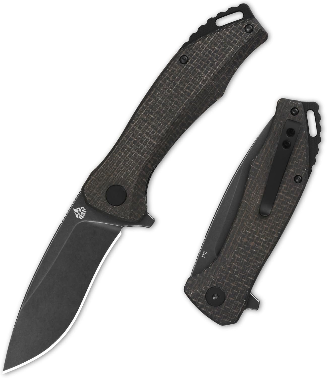 Hoja Sharp D2, HRC58-60, mango antideslizante G10/Micarta Rodamiento de bolas de cerámica liso Apertura, aleta para usuarios zurdos/diestros Mango G10/Micarta de 11,4 cm, peso ligero de 4.2 onzas, cómodo en el mango Clip de bolsillo de transporte profundo, fácil de transportar 100% de devolución de dinero si el nuevo cuchillo tiene defectos en material y mano de obra