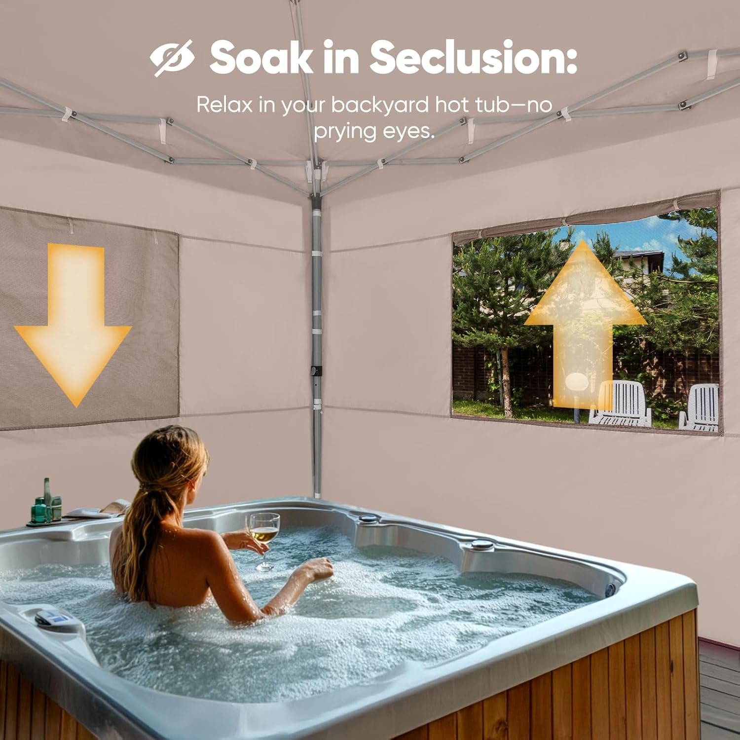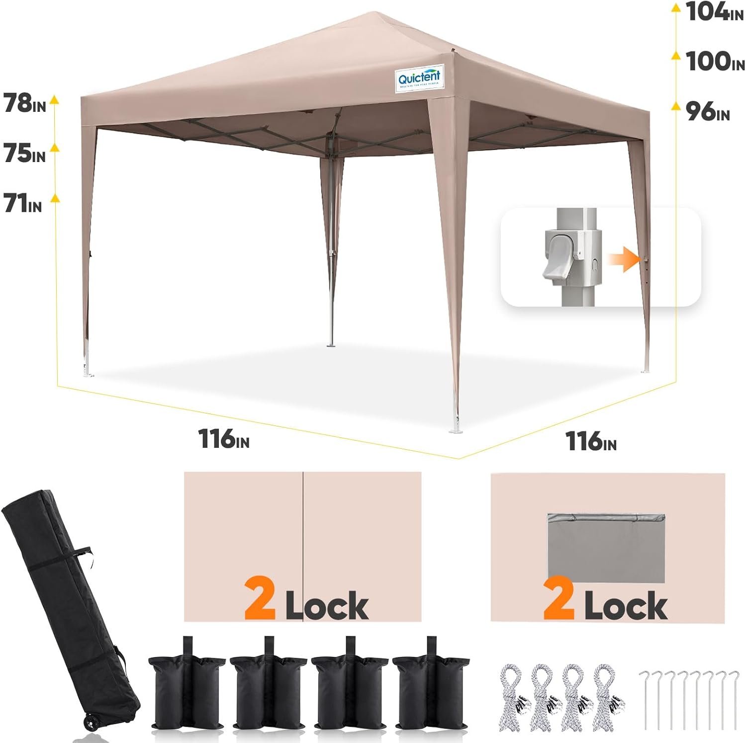 Este toldo desplegable instantáneo cuenta con una estructura de bloqueo central y un marco plegable integrado, lo que permite a una persona configurarlo fácilmente con un solo empuje, y bajarlo con la misma facilidad con un simple giro y tirar, por lo que es increíblemente conveniente en un minuto. Este toldo de 10 x 10 con paredes laterales cuenta con un diseño único de ventana de malla enrollable que te permite respirar aire fresco y disfrutar de la vista exterior mientras que también sirve como protección contra mosquitos. Resistente al agua: hecha de tela Oxford 420D superior con un revestimiento UV avanzado, nuestra tienda de campaña de 16,8 cm x 16,8 cm con paredes laterales ofrece una protección excepcional. No solo es impermeable, sino que también proporciona un impresionante bloqueo UV del 99%, cumpliendo con un estándar UPF 50+ para la máxima seguridad solar. Disfruta de tus eventos al aire libre con comodidad, libre de las preocupaciones de la lluvia o la exposición al sol. La carpa de toldo resistente tiene cuatro lados, incluyendo dos paneles de puerta y dos paneles de ventana. Cada panel es desmontable e intercambiable, se puede combinar libremente para protección contra la intemperie o quitar para ventilación. La tienda de campaña y las 4 paredes laterales se pueden plegar fácilmente y almacenar en la bolsa de transporte con rodillos, por lo que es fácil de transportar y almacenar en el maletero de tu automóvil. Disfruta de actividades al aire libre con facilidad
