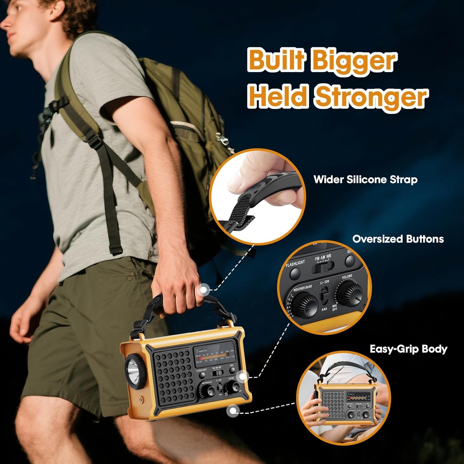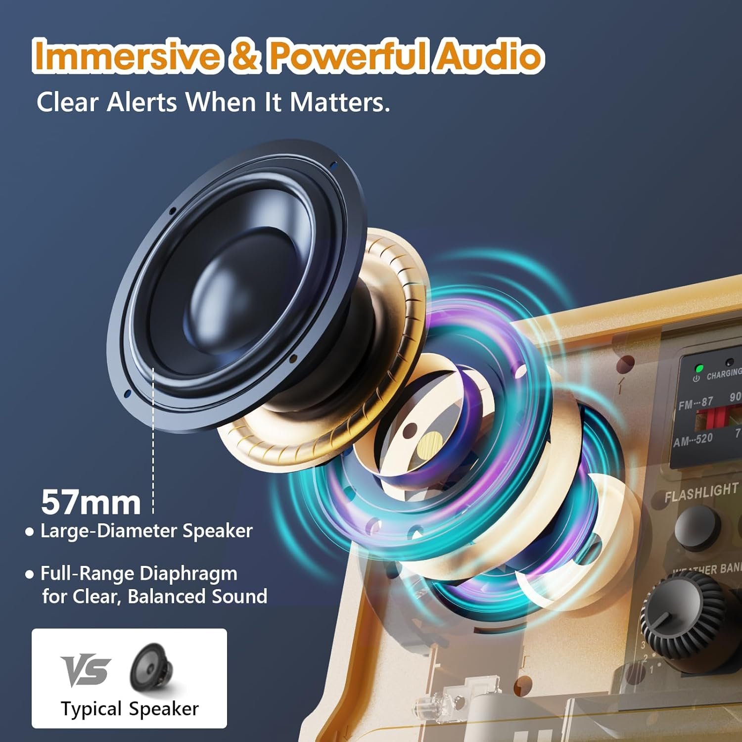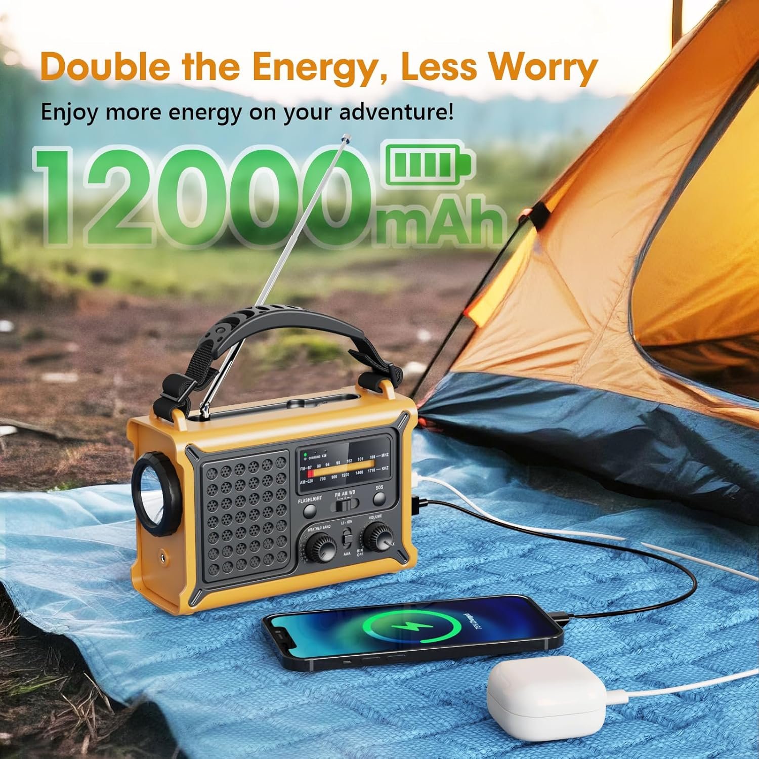 Certificado NOAA para uso de emergencia: manténgase seguro con alertas en tiempo real del Servicio Meteorológico Nacional. Esta radio de alerta meteorológica mantiene a su familia informada de huracanes, tornados, inundaciones y tormentas y otros desastres. Carga solar más rápida y manivela de alta eficiencia: la radio de manivela cuenta con un panel solar monocristalino de alta eficiencia 5 veces más grande y una manivela más larga, convierte la energía solar y la energía 2 veces más rápido, ideal para campistas y emergencias. Mantente conectado durante apagones, tormentas o aventuras remotas. Recepción de señal mejorada: manténgase informado donde quiera que esté. Esta radio am fm cuenta con un receptor de alta sensibilidad y una antena sintonizada de precisión para una recepción AM/FM/NOAA consistentemente fuerte y alertas meteorológicas oportunas incluso cuando estás acampando en montañas remotas, bosques densos o refugiándote en interiores durante la tormenta, mantén a tus familias, aventureros seguros cuando más cuenta. Sonido más claro: equipado con un altavoz de rango completo de 2.244 in, esta radio solar ofrece graves ricos, agudos nítidos y un rango medio equilibrado. Experiencia auditiva inmersiva y de alta definición para entusiastas del aire libre y la radio, disfruta del canal favorito y alerta con cada detalle alto y claro. 12000mAh y puertos de carga versátiles: la radio alimentada por batería tiene una salida USB y tipo C de 12000mAh de alta capacidad, proporciona una carga flexible para su teléfono y más dispositivos varias veces, confiable para apagones, viajes de campamento o evacuaciones de emergencia. Es esencial para senderismo, camping y kits de emergencia. Diseñado para emergencias de la vida real: cuenta con un cuerpo y botones un 30% más grandes, perillas antideslizantes, correa de silicona suave, sirena SOS de 120 db, linterna y lámpara de 5 W, iluminación fácil, mantiene alertas y emite alertas, ahorra preciosos segundos cuando cada momento cuenta.