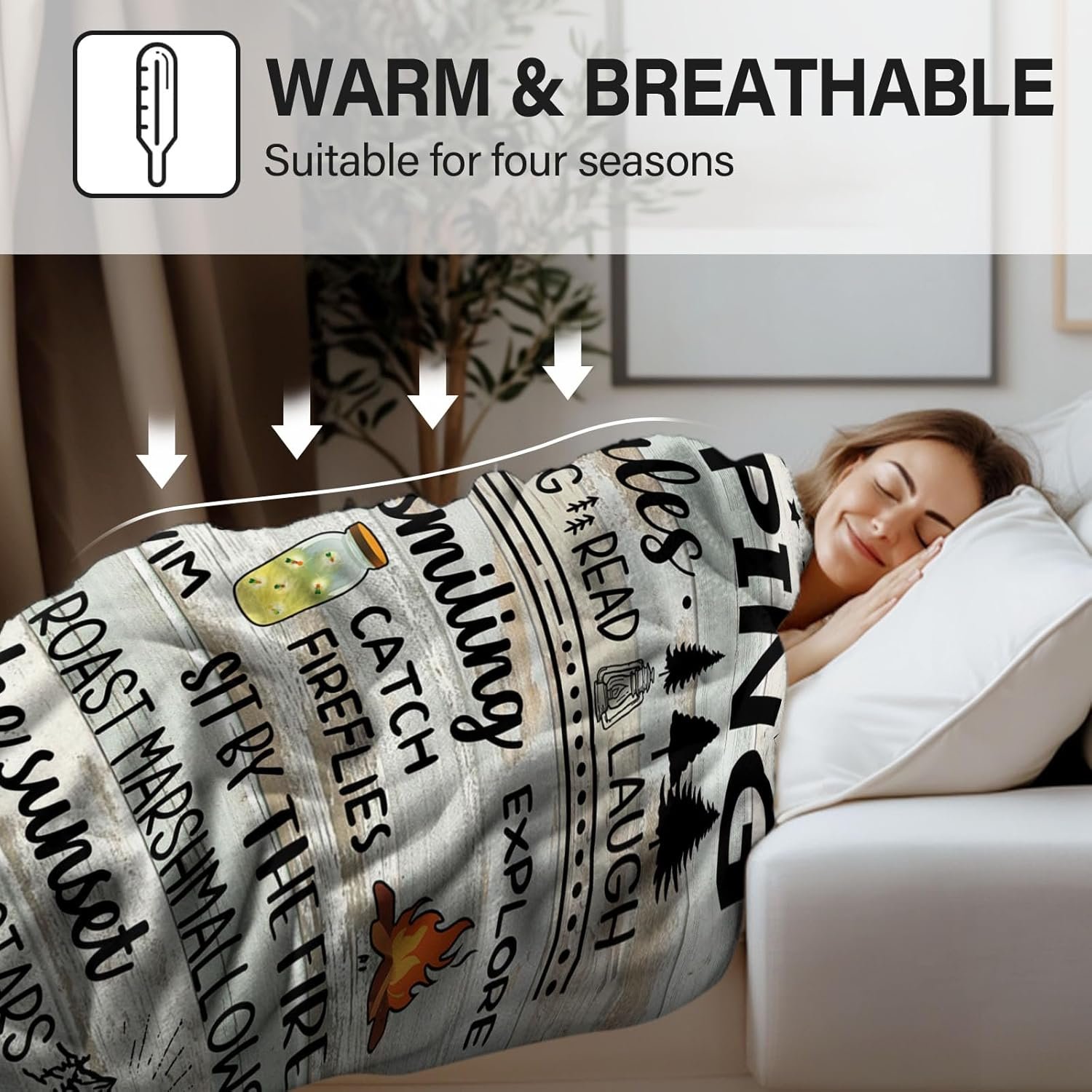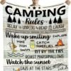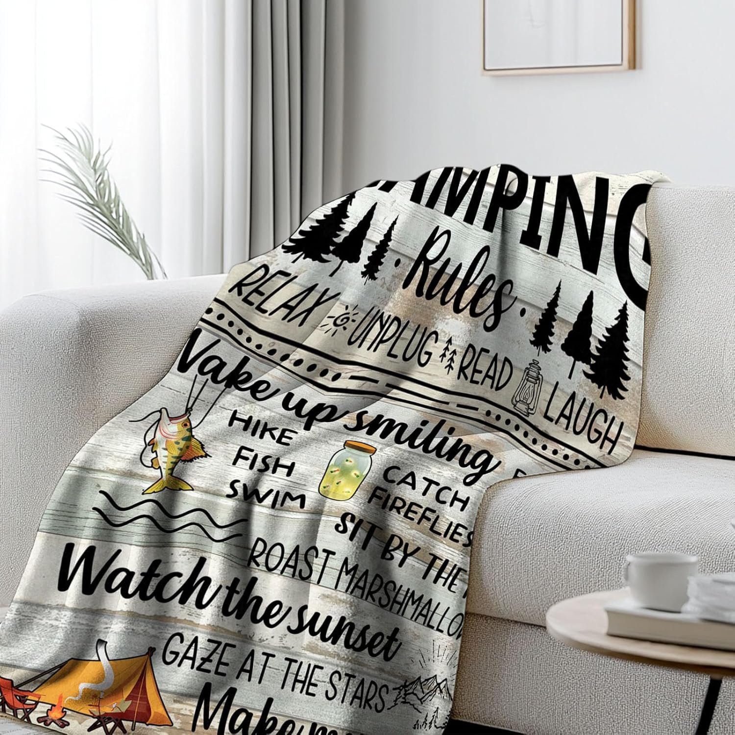 Material y tamaño ideales: esta manta está hecha de franela de primera calidad, ofreciendo calidez y comodidad superiores. Mide 127,0 cm x 152,4 cm, es un tamaño ideal para relajarte en casa o llevar tu próxima aventura. Proporciona comodidad acogedora sin ser demasiado voluminoso. Ideal para acampar y actividades al aire libre: ya sea que estés acampando, haciendo senderismo o relajándote junto a la fogata, esta manta está diseñada para mantenerte caliente y cómodo. Es adecuado para descansar en tiendas de campaña, sentarse alrededor de la fogata o simplemente disfrutar del aire libre. Diseño especial de campamento: con un divertido y especial diseño de cmReglas de campamento cm, esta manta añade un toque de aventura a cualquier viaje de campamento. Los gráficos llamativos lo convierten en una adición divertida y funcional a tu equipo de campamento o decoración del hogar. Gran regalo para campistas: si estás buscando regalos de camping, esta manta es la elección considerada. Es ideal para hombres, mujeres o parejas que disfrutan del aire libre. Ya sea para cumpleaños o vacaciones, seguro que será apreciado por cualquier campista o entusiasta del aire libre. Fácil de cuidar: esta manta es fácil de limpiar y mantener. Simplemente mételo en la lavadora y se mantendrá suave, colorido y duradero. No se decolora ni se encoge, por lo que puedes disfrutarlo en tus aventuras al aire libre durante años.