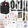Regalo perfecto para el Día del Padre: ¿Estás buscando un regalo único y genial para el Día del Padre? Entonces debes probar nuestro kit de primeros auxilios de supervivencia. Cuenta con un conjunto completo de equipo y botiquín de primeros auxilios. Fácil de usar y transportar. Es el regalo perfecto para hombre, papá, marido. Práctico kit de emergencia: este es un kit de emergencia profesional, contiene varios equipos prácticos de supervivencia: faros LED, linterna, pulsera de supervivencia, sierra de alambre, manta de emergencia, bolígrafo, hebilla colgante de botella, silbato, kit de pesca. Perfecto para cualquier actividad al aire libre como camping, senderismo, automóvil, viajes, escalada, canotaje, etc. Kit completo de primeros auxilios: nuestro kit de primeros auxilios de supervivencia contiene una gama completa de suministros de primeros auxilios de alta calidad, artículos esenciales como vendaje antiséptico, vendaje triangular, vendaje PBT, palitos de algodón, cinta médica no tejida, pinzas, tijeras, etc. Contiene 75 piezas de suministros de emergencia en total. Perfecto para atender cualquier necesidad médica o de emergencia durante aventuras al aire libre. Duradero y portátil: todo el equipo de campamento es de alta calidad y se puede utilizar durante mucho tiempo en entornos hostiles. Y todos estos equipos y equipos de supervivencia están perfectamente dispuestos en una bolsa Molle de nailon 600D que mide 22,9 cm x 15,2 cm x 12,7 cm. Pequeño y ligero, fácil de llevar, y se puede colocar en automóviles, barcos, bicicletas, motocicletas, etc. Será un compañero perfecto para cualquier actividad al aire libre. Amplia gama de aplicaciones: este kit de primeros auxilios de supervivencia es ideal para médicos, bomberos, personal de primeros auxilios, excursionistas, campistas, entusiastas de los deportes al aire libre, etc. Es ideal para automóviles, barcos, bicicletas, motocicletas, lugares de trabajo, viajes, caza, camping, senderismo, pesca, canotaje, ciclismo, deportes al aire libre, aventura en la naturaleza y otras actividades. Con el kit de primeros auxilios de supervivencia, puedes lidiar con cualquier tipo de emergencia y disfrutar de una aventura más relajada y segura.