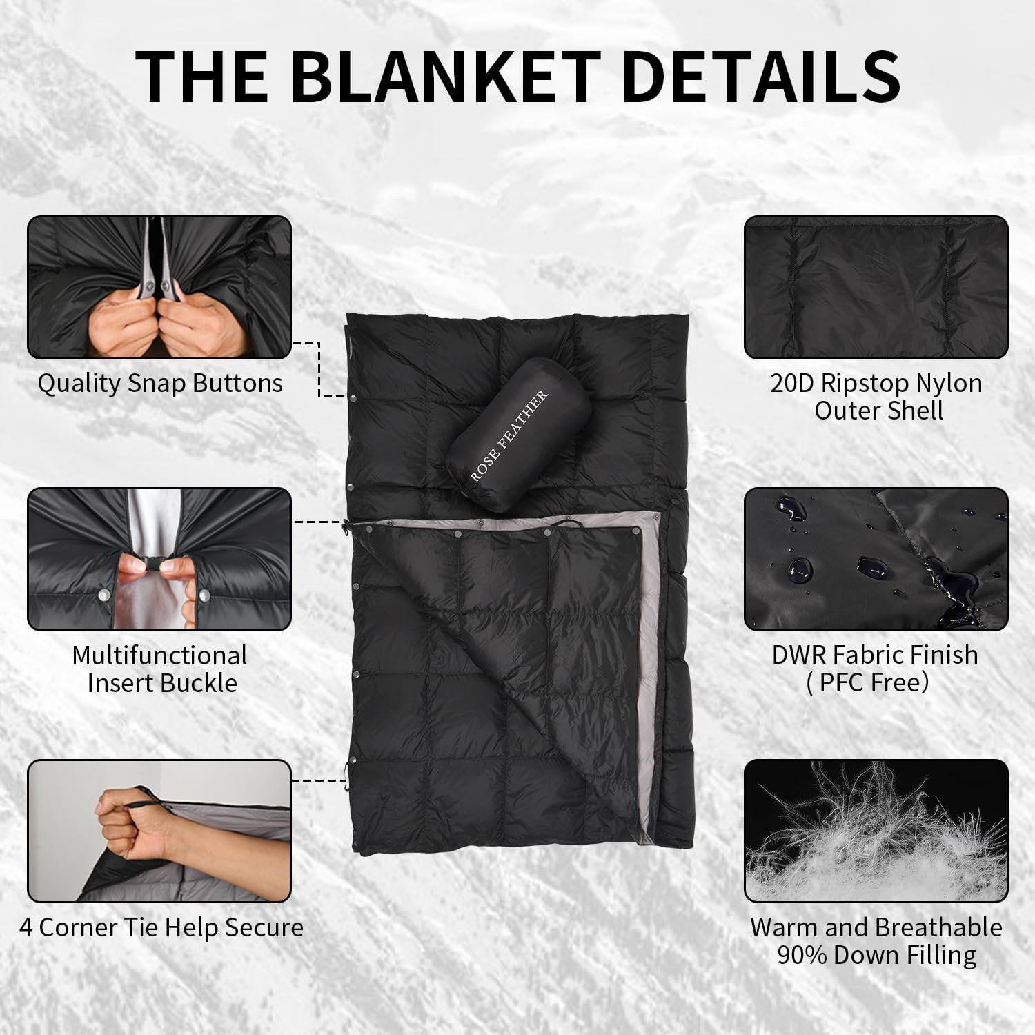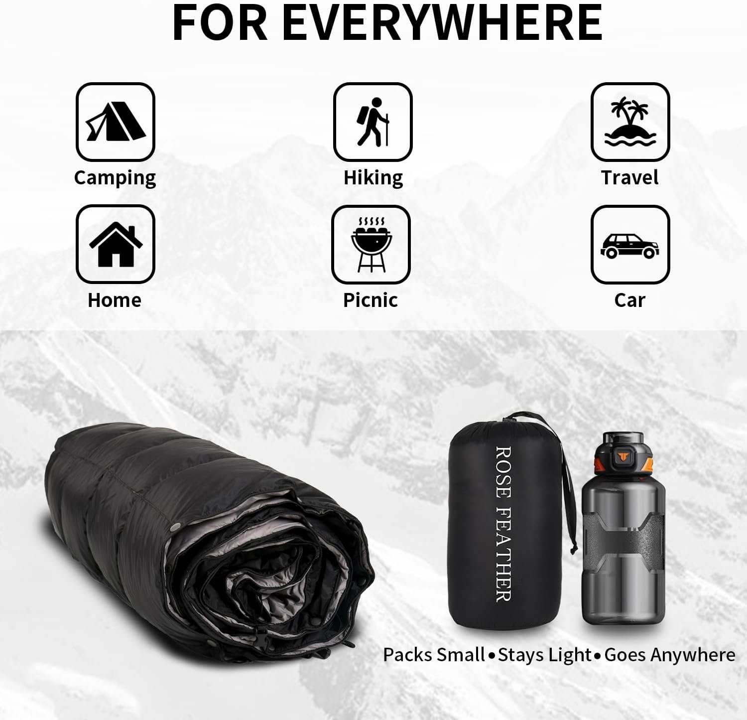 ROSE FEATHER Manta de campamento de plumón: ligera, plegable
