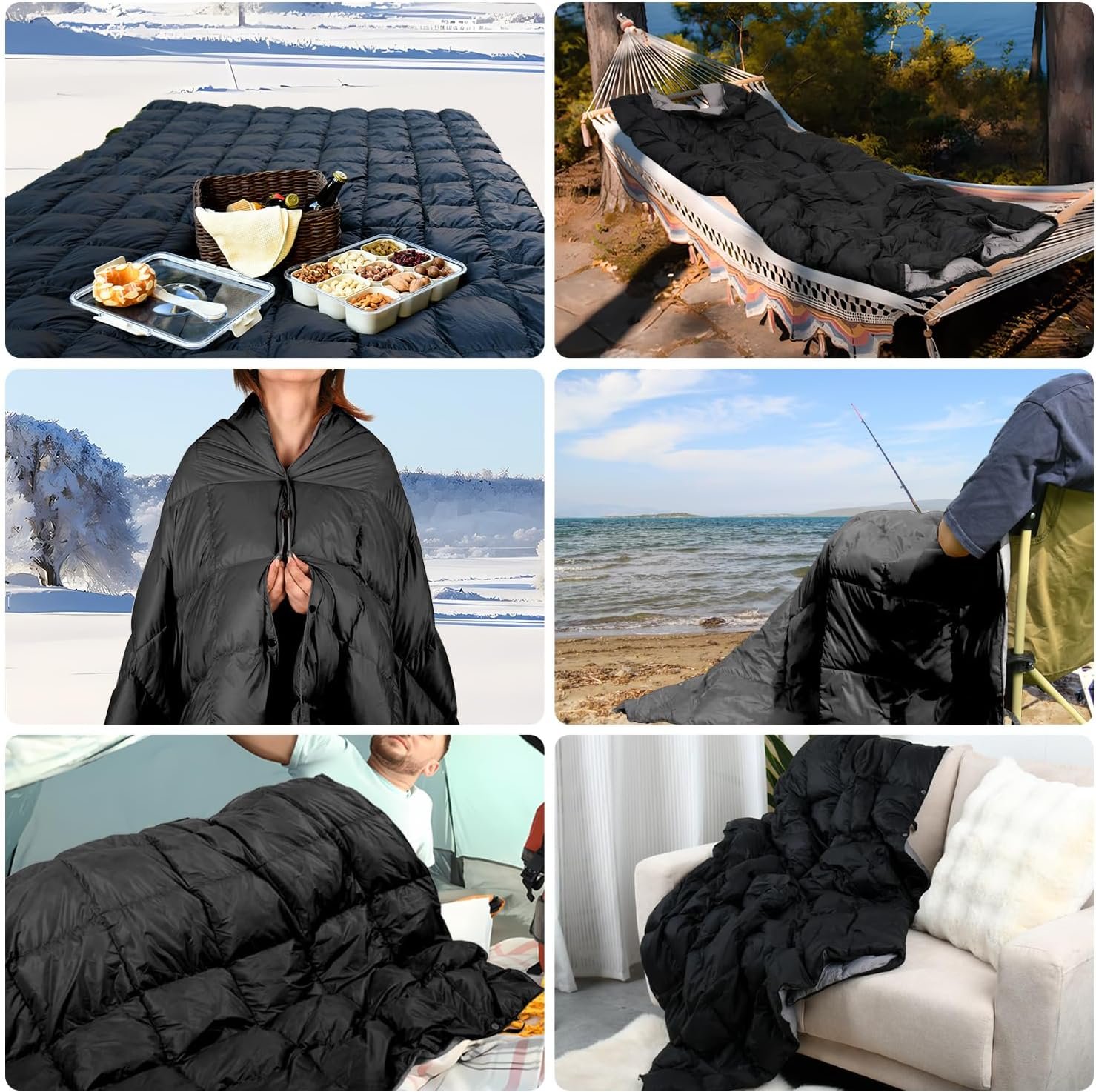 100% poliéster Imported Manta de campamento al aire libre: la manta portátil ROSE FEATHER puede mantenerte caliente y cómodo sin importar dónde estés. También se puede utilizar como una alternativa o suplemento de saco de dormir, o manta portátil para acompañarte en la siesta al aire libre, camping, mochilero, senderismo, playa o festivales, o para descansar en el sofá por la tarde. Calidez diseñada, ligereza sin esfuerzo: relleno de 90% plumón de ganso, el peso real del relleno de la manta es de 1.1 libras, lo que te hace sentir cálido en cualquier ocasión. Nuestra manta de viaje mide 14,5 cm x 24,9 cm cuando está empaquetada y se expande a un generoso 139,7 cm x 200,7 cm cuando se coloca plana, que es más grande que sus compañeros. Diseñada para la vida en movimiento, nuestra manta acolchada portátil para mochileros viene con una práctica bolsa de transporte incluida Resistente al agua y al viento: en comparación con otras mantas comunes de campamento, nuestras colchas de campamento al aire libre están hechas de nailon 20D resistente, costuras reforzadas y revestimiento DWR (repelente al agua duradero) para proteger tu manta de salpicaduras y clima. El diseño de la hebilla resistente al viento te permite llevar fácilmente el cuerpo, debido al acoso del viento frío. Multifuncional y duradera: disfruta de la calidez de manos libres de una manta poncho/caja de pies con nuestra función de botón a presión, para que puedas moverte libremente mientras te mantienes caliente durante tus actividades al aire libre. Los lazos de amarre en las esquinas te permiten clavar la manta en el suelo, como una manta de picnic para ti. El cierre de cuerda ajustable puede convertir la manta al aire libre en un cálido saco de dormir de mochilero. La versión reversible AB puede cambiar de estilo libremente, fácil de distinguir entre la parte delantera y trasera y mantener la limpieza. Regalos al aire libre No importa la ocasión, nuestras mantas de hamaca para clima frío son los accesorios imprescindibles de campamento y regalos de campamento para el aventurero en tu vida