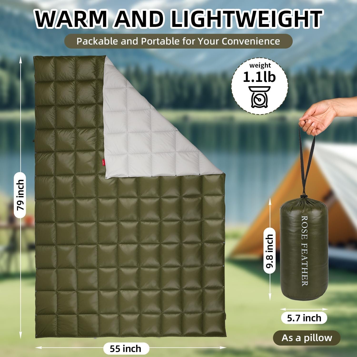 ROSE FEATHER Manta de campamento de plumón: ligera, plegable