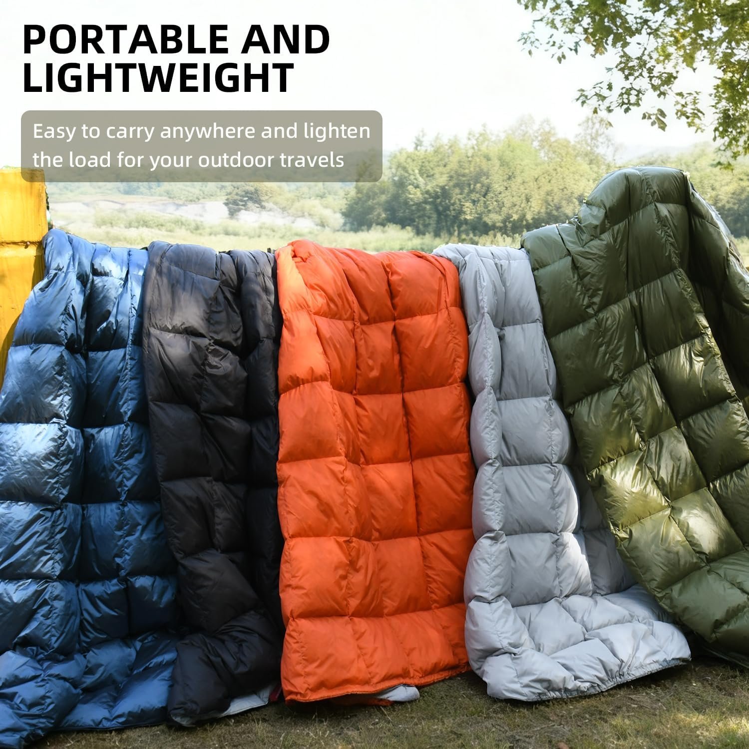 Componentes incluidos: Manta de camping de plumón, bolsa de transporte impermeable