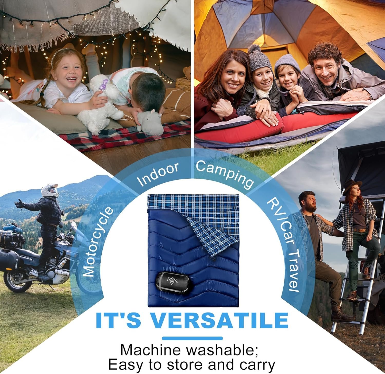 anti rasgadura Imported Saco de dormir doble espacioso de alta calidad: ¿Cansado de luchar por el espacio en tu sueño? Nuestro saco de dormir de franela tamaño Queen es de 221,0 cm x 160,0 cm, 10,2 cm más ancho que la mayoría. Proporciona un lujoso espacio para dormir para dos adultos. Perfecto para parejas que aman extenderse que permite un movimiento sin restricciones. Acurrúcate sin apretar Cierre, aire frío: di adiós a las noches frías. Nuestro saco de dormir para 2 personas cuenta con una tira resistente al viento a lo largo de la cremallera, que bloquea el calor y patea el aire frío a la acera. Es como un campo de fuerza contra el congelamiento, para que puedas mantenerte caliente mientras otros tiemblan Calidez para todas las estaciones y comodidad similar a la nube El aislamiento de algodón hueco de alta calidad atrapa el calor corporal como un abrazo acogedor, asegurando noches cálidas en cualquier aventura. Su resistente exterior de poliéster 210T actúa como un protector contra la humedad, repele el rocío, la lluvia ligera y las salpicaduras para mantenerte seco desde el atardecer hasta el amanecer. Ideal para 50°F-59°F (50.0 °F-59.0 °F), se adapta a niños de 10 a 12 años durante campamentos familiares y adultos en caminatas solas o observación de estrellas en el patio trasero. Suave, transpirable y adaptable Funcionalidad versátil 3 en 1 Este innovador saco de dormir XL para adultos se convierte en dos sacos de dormir separados o 2 mantas para escenarios de uso flexibles. El sistema de doble cremallera cuenta con una cremallera de ventilación inferior para control de temperatura para mayor comodidad. Ya sea que estés deseando un espacioso saco de dormir doble para soportar noches frías o necesitas dos almohadillas separadas para viajes de mochilero, este diseño versátil se adapta sin esfuerzo a todas tus necesidades al aire libre. Mantenimiento sin complicaciones, lavable a máquina: las aventuras se ensucian, la limpieza no debería. Este saco de dormir impermeable está diseñado para un cuidado sin esfuerzo: simplemente mételo en la lavadora después del viaje, o limpia los derrames en segundos con un paño húmedo. Lo suficientemente resistente como para manejar los percances divertidos de los niños (10-12) y confiable para las salidas accidentadas de adultos, se mantiene fresco sin importar a dónde te lleve el sendero. La comodidad se une a la durabilidad, porque un gran equipo funciona tan duro como tú.