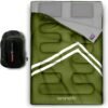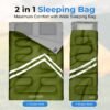 Cómodo para dos personas: Este saco de dormir doble se adapta cómodamente a dos adultos o adolescentes con forro suave y dos almohadas incluidas. Te mantiene caliente y cómodo en viajes de campamento haciendo que dormir al aire libre se sienta más como en casa. Se despliega en dos bolsas individuales: puedes separar fácilmente este saco de dormir doble en dos bolsas individuales. Esto es perfecto cuando quieres dormir por separado o compartir con amigos mientras te mantienes caliente y cómodo en interiores o exteriores. Cálido para climas fríos: diseñado para noches frías, este saco de dormir te mantiene caliente en temperaturas tan bajas como 5 °F. El relleno de algodón hueco y el forro suave ayudan a atrapar el calor para que te mantengas cómodo mientras acampas, haces senderismo o mochilero. Resistente al agua y fácil de limpiar: la resistente capa exterior de poliéster 210T protege contra la humedad y la suciedad, mientras que el tejido interior suave es fácil de limpiar. Esto lo hace ideal para acampar en suelo húmedo o viajes desordenados al aire libre. Fácil de transportar y empacar: este saco de dormir se pliega en una bolsa de almacenamiento compacta para que puedas llevarlo fácilmente mientras viajas. Es ligero y perfecto para senderismo, mochileros, viajes por carretera o guardar en tu kit de emergencia.