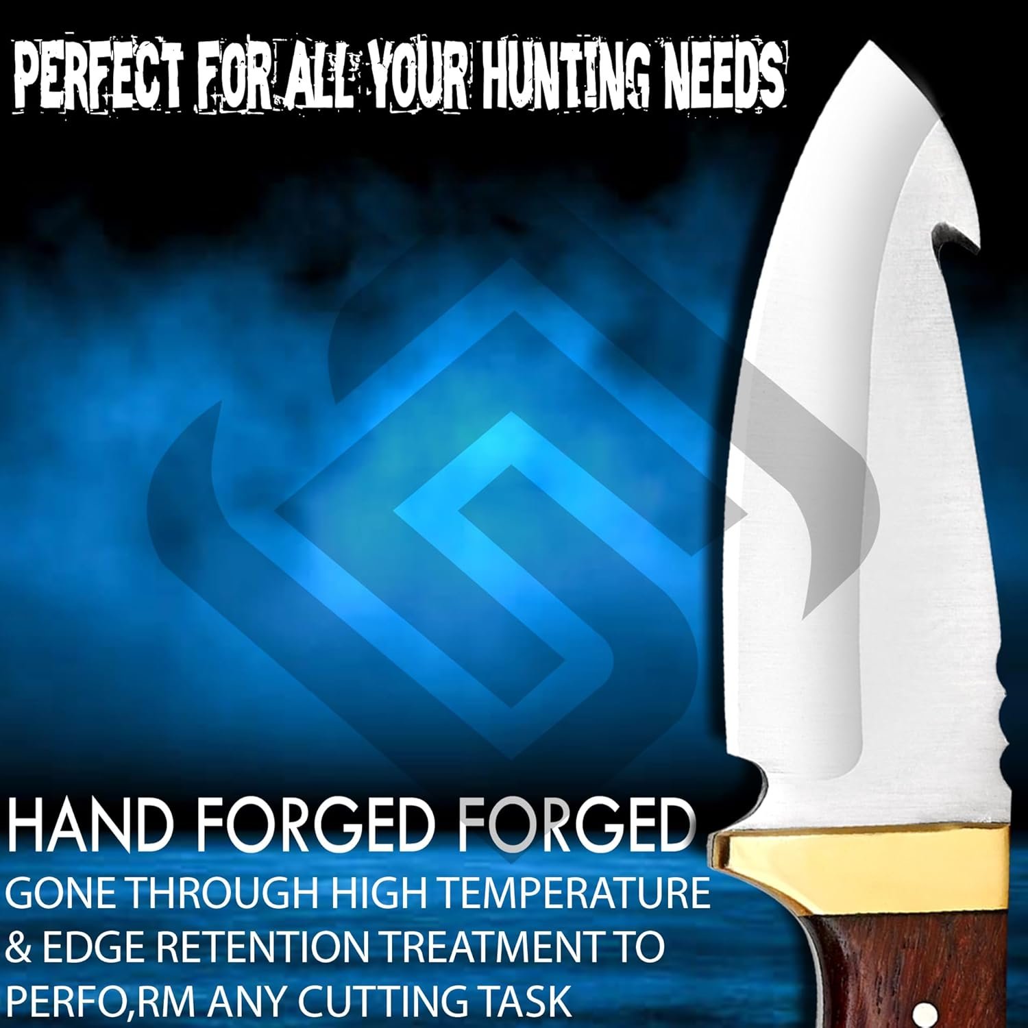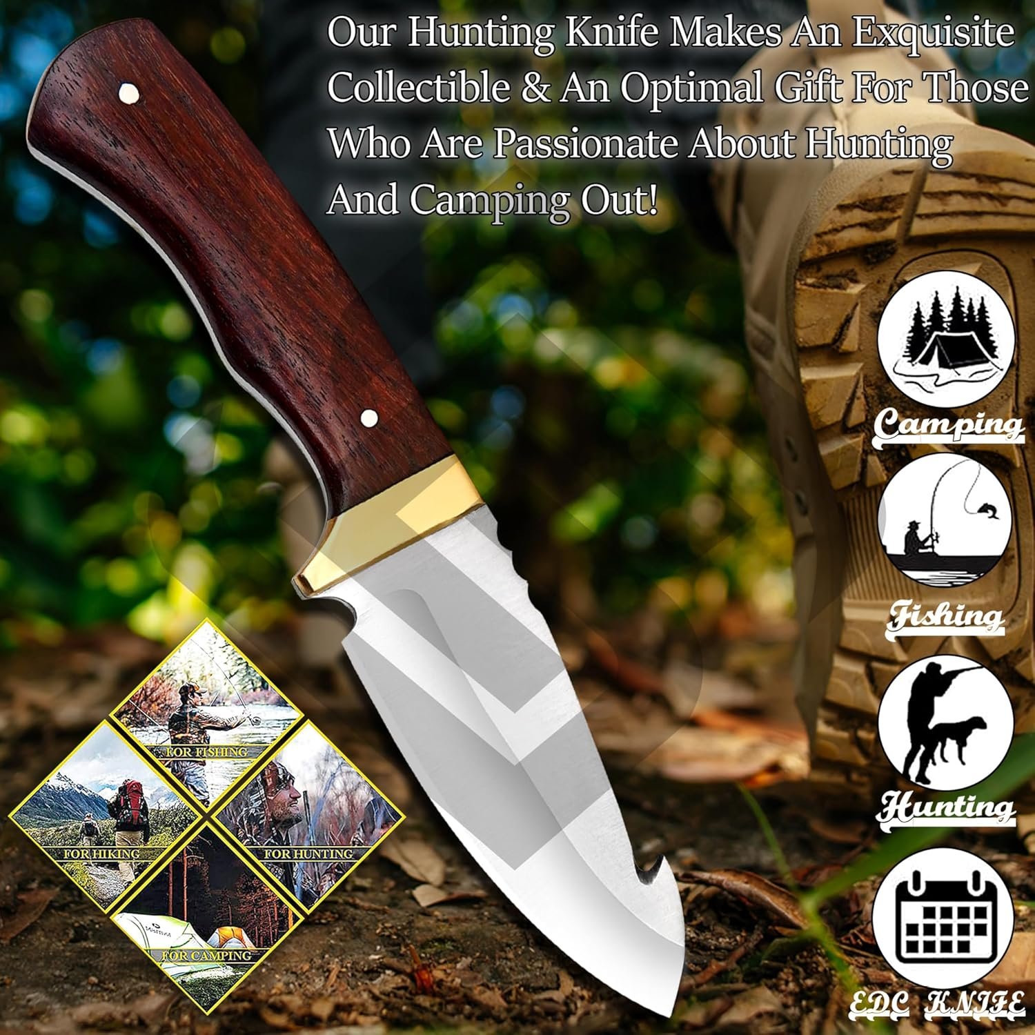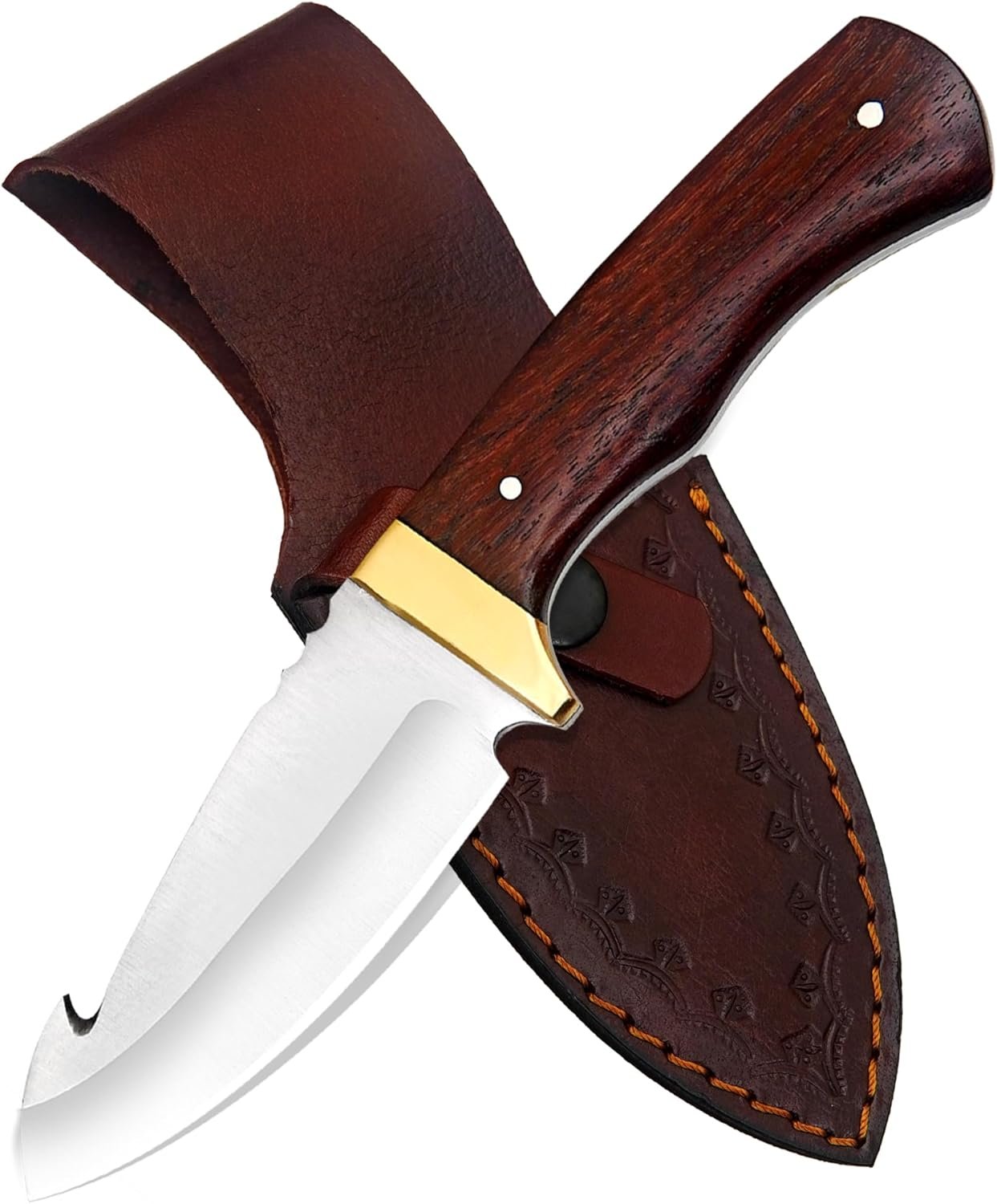 Cuchillo de gancho intestinal de hoja fija de alta calidad, longitud total de 20,3 cm, construcción de acero inoxidable de espiga completa con una hoja de gancho para el intestino afilada de 8,9 cm, perfecto para cazar, desollar y vestir ciervos u otros juegos. Mango ergonómico de madera de 11,4 cm para un agarre superior: hecho de madera de nogal suave para una sujeción segura y antideslizante, ofreciendo comodidad y control incluso en condiciones exteriores húmedas o frías. Ligero y duradero: solo 8 onzas, lo suficientemente fuerte para un uso pesado al aire libre mientras que es fácil de llevar, por lo que es ideal para cazadores, campistas y supervivientes. Funda de cuero con trabilla para cinturón para un transporte seguro: incluye una funda de cuero marrón premium para proteger tu cuchillo de caza y mantenerlo accesible durante el uso en el campo Herramienta versátil para exteriores y caza: ideal como cuchillo para desollar ciervos, cuchillo de camping, cuchillo de pesca o cuchillo de procesamiento de juegos en general, por lo que es un artículo imprescindible para cualquier hombre al aire libre.