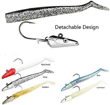 Cuerpo de PVC, respetuoso con el medio ambiente, suave al tacto, sin olor irritante, estos señuelos de pesca suaves son perfectos para peces feroces. Ojos realistas 3D, luces reflectantes de cuerpo semitransparente moteado que hacen que el cebo sea más atractivo para los peces. 5 colores incluyen 1 cebo luminoso, fuerte efecto de brillo en la oscuridad que funciona en diferentes condiciones de agua y pesca nocturna. Alta simulación cabeza cabeza pala cola de hundimiento suave cebos de baño, nadando en el tipo cms cm de agua. La cabeza de plomo simulada le permite sumergirse en todos los niveles de agua. El paquete viene con 5 piezas (cada color 1 pieza)