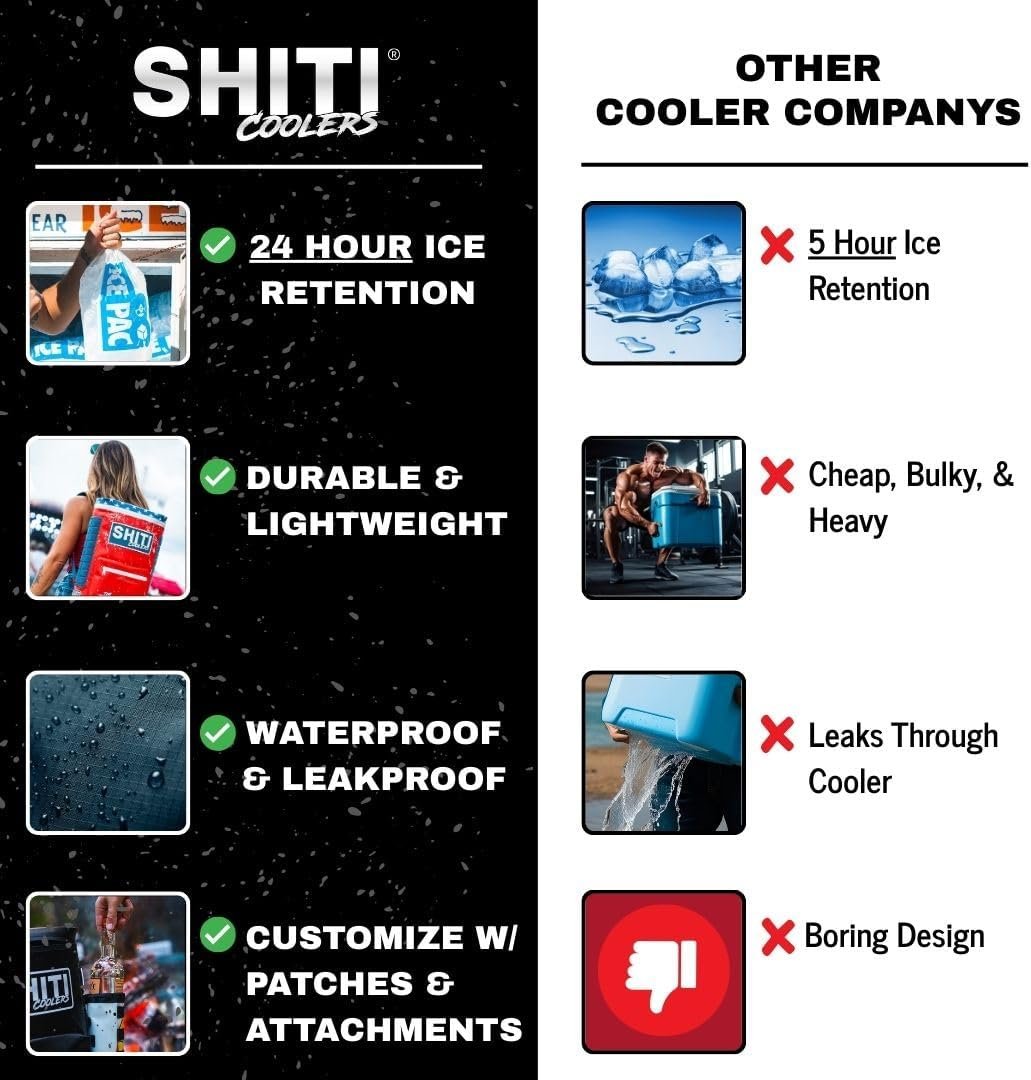 Mantenlo fresco con latas y hielo: el enfriador de mochila SHITI está diseñado para almacenar hasta 6 latas con hielo, ofreciendo una refrigeración excepcional para todas tus aventuras. Con su cuerpo suave y aislamiento las 24 horas, puedes mantener tus bebidas frías todo el día mientras haces senderismo, fiestas en el estacionamiento o pasas el día en la playa. Pon la fiesta en tu espalda y lleva tus bebidas frías donde quiera que vayas Listo para cualquier aventura: desde días de playa y viajes de campamento hasta portones traseros, viajes por carretera e incluso salidas de golf, el Cooler es tu compañero para cada aventura. Versátil, duradero y diseñado para una fácil portabilidad, este enfriador puede mantener tus bebidas frías y tus aperitivos frescos sin importar a dónde te dirijas. Sin derrames, sin preocupaciones: la hielera está equipada con una cremallera impermeable resistente y un diseño a prueba de fugas, lo que garantiza que no haya derrames, fugas o desorden, sin importar qué. Ya sea que estés haciendo senderismo, viajes por carretera o picnic, puedes estar tranquilo sabiendo que tu contenido se mantendrá seco y seguro en este enfriador de calidad. Ligero y construido para durar: a pesar de que es increíblemente ligero con menos de 3 libras, la hielera está repleta de aislamiento duradero y un exterior resistente, por lo que es ideal para viajes, viajes a la playa y campamento. Además, es fácil de viajar, por lo que puedes llevarlo fácilmente contigo en aviones o empacarlo para tu próxima escapada, todo sin el volumen añadido. Personaliza tu refrigerador, muestra tu estilo: haz un chapoteo con la hielera añadiendo tu propio toque personal. Con un sistema Molle para accesorios y ganchos y bucles, puedes personalizar esta hielera con parches, accesorios y mucho más. El diseño degradado azul y verde crea un aspecto impresionante inspirado en el agua, perfecto para barbacoas, portones traseros o días de playa. Destaca con tu estilo único mientras mantienes tus bebidas frescas en esta vibrante y elegante hielera