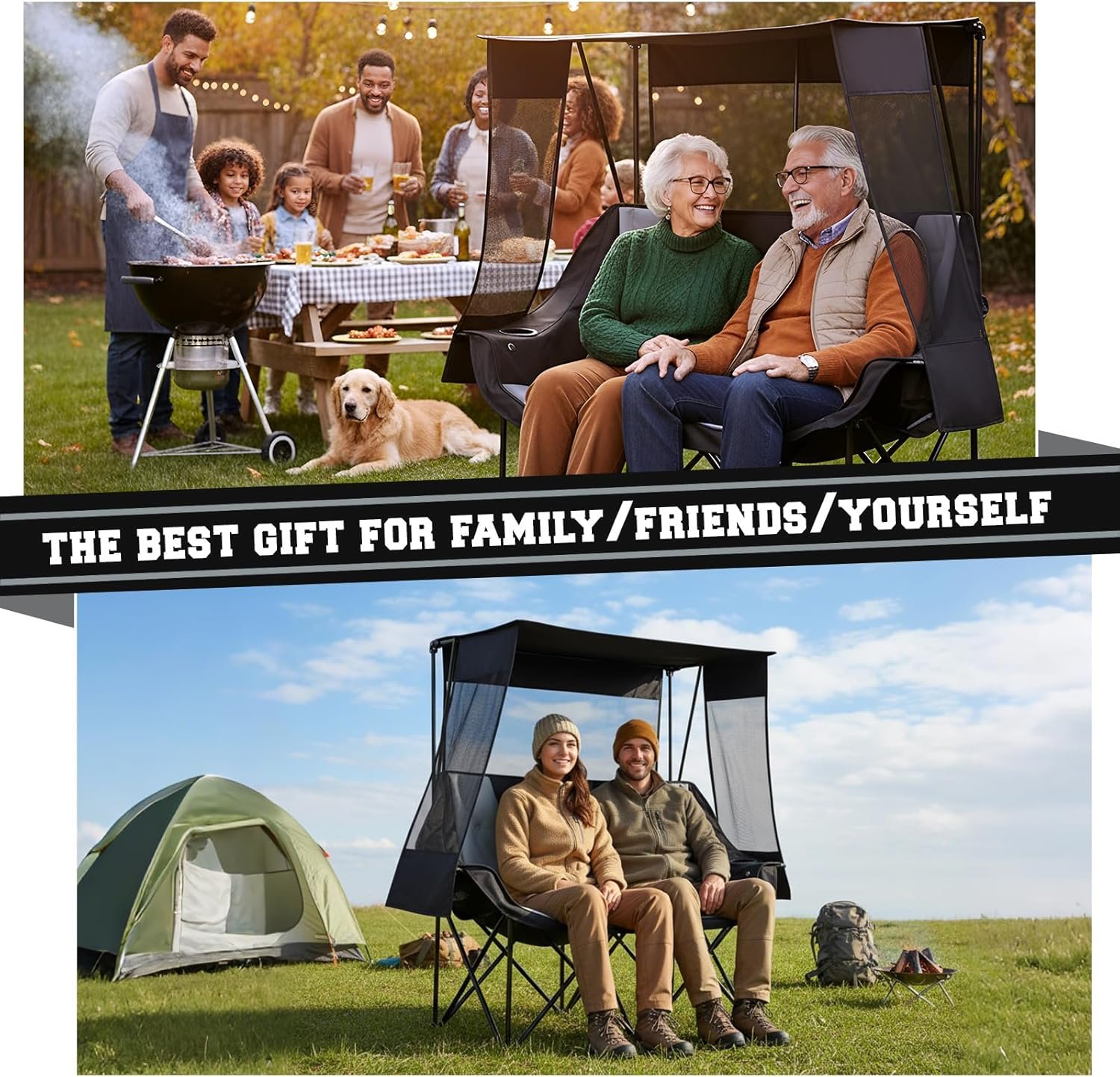Silla de campamento doble climatizada con toldo para 2 perso