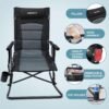Silla de camping plegable de gran tamaño con reposapiés, alm