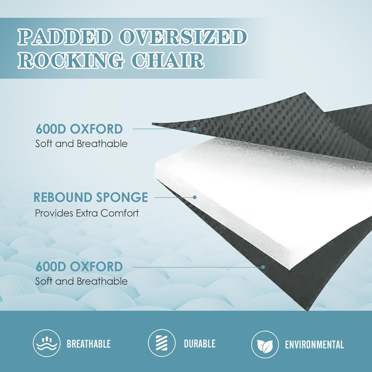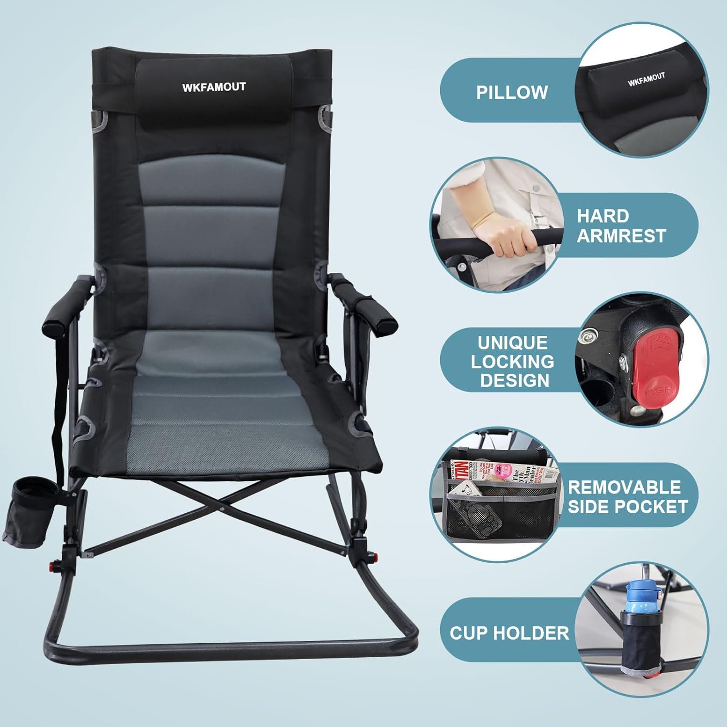 De gran tamaño para mayor comodidad: el balancín plegable está diseñado con una estructura ergonómica que te permite balancearte de forma segura hacia adelante y hacia atrás a un ritmo cómodo, con el respaldo grueso y el reposacabezas y un asiento más ancho, incluso las personas más grandes pueden disfrutar de un balanceo rápido completamente envolvente. Resistente con reposabrazos duros: esta mecedora de camping es segura y fácil de poner y quitar. El tamaño de la mecedora es de 115,0 cm x 68,0 cm x 95,0 cm, el tamaño del respaldo del asiento es de 72,0 cm. Construido con una tela Oxford 600D duradera de doble capa, marco de acero más grueso y soportes en forma de X que son resistentes y pueden soportar hasta 300 libras. Diseño conveniente: esta mecedora al aire libre también está diseñada con bolsa de malla y portavasos para bebidas que hacen que esta mecedora al aire libre camping sea más conveniente de usar. El diseño único del reposapiés proporciona apoyo y comodidad adicionales. Los reposapiés permiten a los usuarios ajustar su posición sentada más libremente y reducir la fatiga de las piernas. Portátil y compacto: la mecedora portátil es fácil de instalar y quitar, proporcionando la comodidad de una configuración rápida de asientos para eventos al aire libre. El diseño plegable único hace que sea fácil de plegar en un paquete. La mecedora de campamento se puede colocar fácilmente en un vehículo u otra herramienta de transporte para un fácil uso en diferentes lugares al aire libre. Estructura estable: la mecedora al aire libre presta atención a la firmeza y durabilidad, y el marco de acero resistente puede adaptarse a diferentes terrenos, proporcionar un buen apoyo y prevenir la inestabilidad causada por el suelo desigual para hacer frente a varios desafíos en el entorno al aire libre.