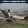 Silla de camping reclinable 2 en 1 con reposapiés: esta versátil silla de camping combina la funcionalidad de una silla reclinable y una silla de camping plegable. El reposapiés retráctil permite la máxima relajación, y el respaldo ajustable ofrece 3 ángulos reclinables diferentes para mayor comodidad durante cualquier actividad al aire libre como camping, viajes a la playa o picnics. Diseño cómodo y duradero: construido con un marco de metal resistente y tela Oxford 600D duradera, esta silla garantiza un apoyo y comodidad duraderos. El tejido de malla transpirable proporciona mayor ventilación, manteniéndote fresco y cómodo, mientras que el reposacabezas acolchado ofrece soporte adicional para el cuello y la cabeza para una experiencia verdaderamente relajante. Práctico almacenamiento y accesorios: mantén tus artículos esenciales al alcance con el portavasos integrado y la bolsa de almacenamiento. La espaciosa bolsa de almacenamiento puede contener tu teléfono, llaves u otros objetos pequeños, mientras que el portavasos garantiza que tus bebidas estén siempre accesibles. El diseño plegable de la silla hace que sea fácil de empacar y transportar para tu próxima aventura al aire libre. Soporta hasta 300 libras para adultos: construido con un marco resistente, este sillón reclinable plegable soporta hasta 300 libras, proporcionando asientos confiables y resistentes para adultos. Ya sea que estés descansando en un campamento o relajándote en la playa, esta silla te da la confianza y la comodidad que necesitas para cualquier actividad al aire libre. Portátil y fácil de instalar: esta silla ligera es fácil de instalar y plegar, por lo que es el compañero perfecto para actividades al aire libre. Viene con una práctica bolsa de transporte, lo que permite un transporte sin complicaciones. Su diseño compacto plegable garantiza que ocupe un espacio mínimo, ideal para viajes en movimiento, campamento y mucho más