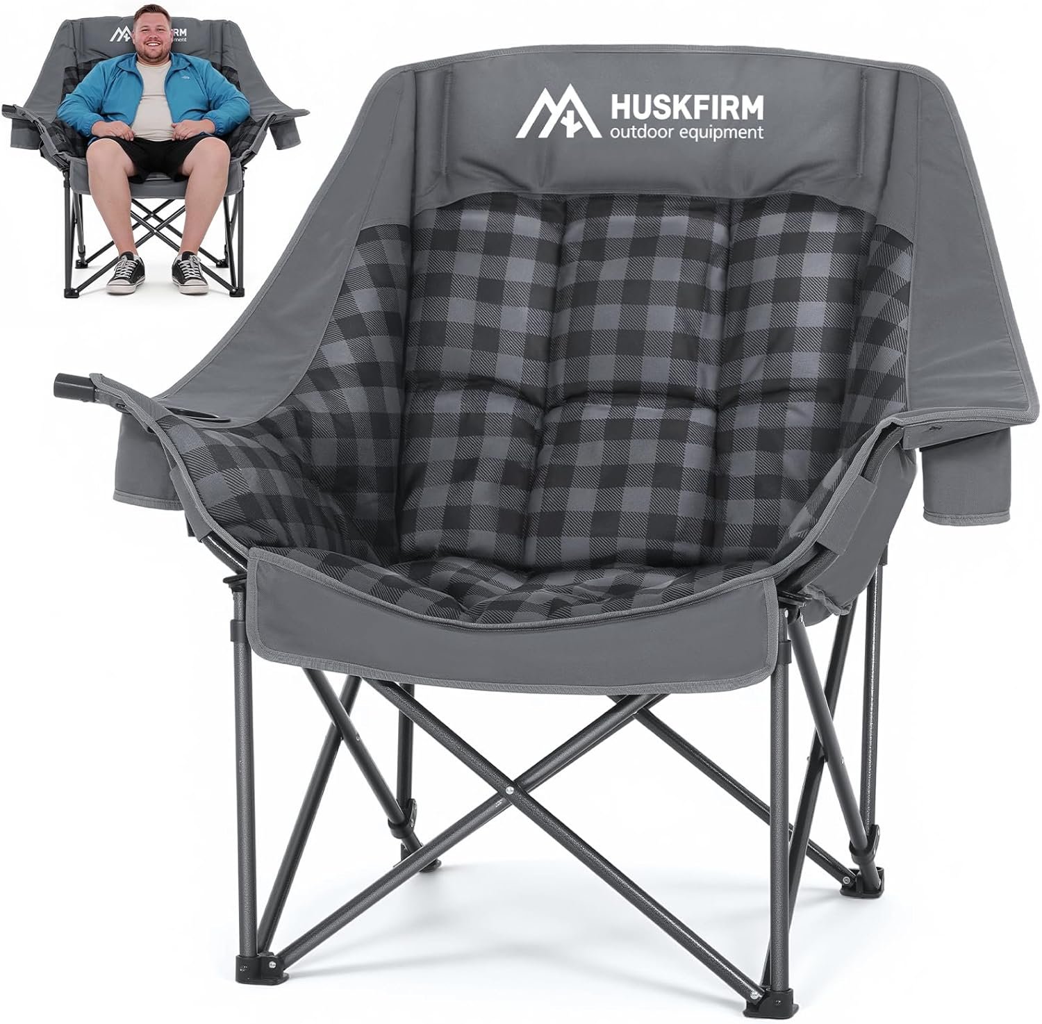 Respaldo elevado y reposabrazos ampliado para más personas: nuestra silla de exterior de gran tamaño cuenta con un respaldo elevado de 69,8 cm y reposabrazos de 103,4 cm de ancho. Este diseño no solo proporciona apoyo adicional, sino que también se adapta a personas de todos los tamaños, por lo que es la silla de camping cómoda ideal para que los adultos se relajen mientras disfrutan de la naturaleza. Acolchado de lujo para una máxima relajación: nuestras cómodas sillas de camping para adultos cuentan con respaldos y asientos totalmente acolchados que se reclinan en un ángulo que se combina con un diseño de una sola pieza para adaptarse perfectamente a las curvas de tus áreas lumbares y traseras para una máxima comodidad. Diseño duradero para una calidad duradera: nuestra silla de camping XL cuenta con un marco de aluminio reforzado con material resistente al óxido y a la decoloración que puede soportar hasta 400 libras, y el asiento y el respaldo están fabricados con tela Oxford 600D para garantizar que esta silla de camping acolchada con calefacción soporta un uso a largo plazo. Portavasos multifuncionales para una variedad de bebidas: los reposabrazos de las sillas de camping de gran tamaño están equipados con dos portavasos y un soporte adicional para copas de vino. Ya sea que estés bebiendo un refresco, una cerveza fría o disfrutando de champán, la versatilidad de estos portavasos te permite mantener tu bebida a mano y mejorar tu experiencia al aire libre. Fácil de transportar y almacenar: esta silla acolchada para césped se despliega y se pliega en segundos, y mide solo 3.45 pies x 0.8 pies cuando está plegada. Viene con una elegante bolsa de transporte para un fácil transporte en tu automóvil, ideal para los entusiastas del campamento.
