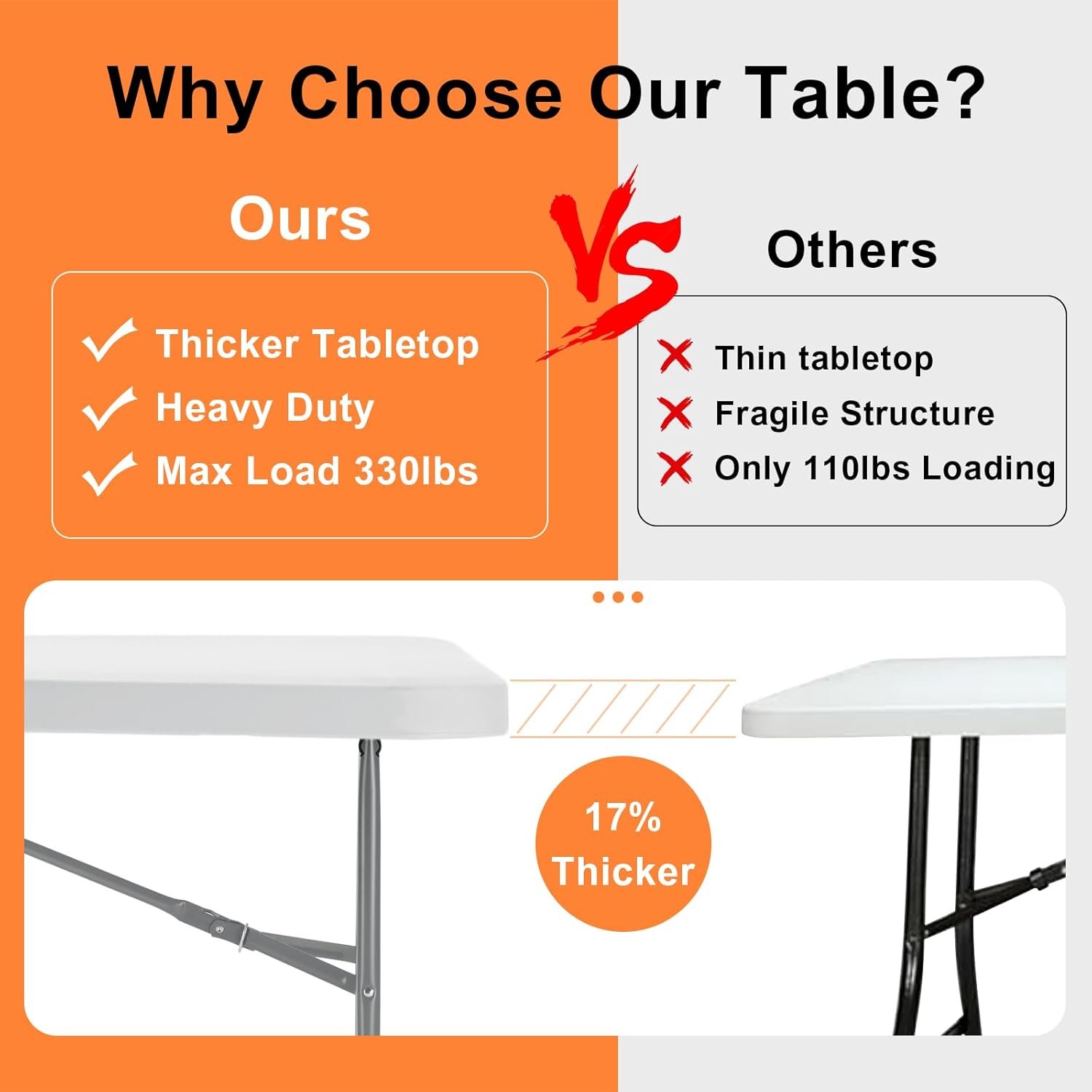 SKOK Mesa de picnic plegable de 330 libras de altura ajustab