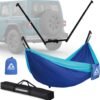 Modelos adaptados: hamaca de enganche CROSSHIP Todos los accesorios estándar de 5,1 cmreceptores de vehículos (Nivel III, IV y xtra y resistente) Duradero y fiable: este revestimiento puede soportar la radiación ultravioleta y las condiciones climáticas adversas, por lo que es muy adecuado para uso en exteriores. No se daña ni se oxida fácilmente Parámetros del producto: con una capacidad de peso de 350 libras, el paquete incluye un juego de soportes de hamaca negros y una hamaca de nailon paracaídas azul 210T Tamaño de la hamaca: el soporte de la hamaca tiene tres longitudes y es adecuado para hamacas de más de 248,9 cm. Por supuesto, puedes confiar en nuestra cama paralela de cortesía (Hamaca) Fácil de instalar: con su diseño fácil de usar, el soporte para hamaca de enganche de remolque se puede configurar y desmontar de forma rápida y sin esfuerzo, lo que le permite concentrarse en disfrutar de su tiempo al aire libre Relájese en cualquier lugar: ya sea que esté acampando, portón trasero o simplemente tomando un descanso en la carretera, la hamaca para camiones ofrece un lugar cómodo y seguro para relajarse y disfrutar del aire libre. Hamaca de enganche CROSSHIP y eleva tu experiencia al aire libre Necesitas esto: recibirás una bolsa de almacenamiento para hamaca, cremallera duradera que te ayuda a abrir y cerrar fácilmente la bolsa, Oxford 600D, duradera y resistente al agua para uso en exteriores