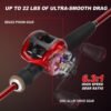 La caña cuenta con una construcción de carbono de 30 toneladas, más ligera que el carbono estándar mientras que ofrece una rigidez excepcional para manejar peleas con peces. Junto con guías de óxido de titanio, reduce la fricción de la línea para lanzamientos más suaves y resiste la corrosión, asegurando un uso a largo plazo en agua dulce o agua salada ligera. El agarre ergonómico de corcho ofrece un agarre antideslizante y cómodo, incluso con las manos mojadas, reduciendo la fatiga durante viajes de pesca prolongados. El asiento del carrete ABS garantiza una fijación segura del carrete (sin aflojar a mitad de la pelea), mientras que las líneas de posicionamiento de la sección de la varilla garantizan un montaje preciso y sin costuras en todo momento. El carrete cuenta con una relación de transmisión de 6.3:1 para una recuperación rápida de la línea, ideal para enrollar rápidamente peces activos o cubrir más agua. Equipado con 4+1 rodamientos de bolas (4+1BB), ofrece lanzamientos suaves y recuperación sin atascos, asegurando un rendimiento constante en cada viaje. Elige 5.9 pies para pesca maniobrable en lugares estrechos (por ejemplo, cubierta gruesa o lagos pequeños) o 6.9 pies para distancias de lanzamiento más largas para llegar a zonas de alimentación en aguas abiertas. Ambas longitudes mantienen un rendimiento ligero, por lo que son fáciles de manejar todo el día. Para los pescadores novatos nuevos en la pesca, el juego combinado de cebo es una de las mejores opciones para comenzar su viaje. La varilla y el carrete se combinan profesionalmente para trabajar en perfecta armonía. Cuando lo sostienes, sentirás instantáneamente el diseño equilibrado, cómodo y fácil de usar.