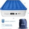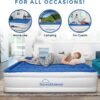 – Puedes estar tranquilo con tu compra de un colchón de aire de la más alta calidad. – – Diseño líder en la industria, que utiliza exclusivamente la tecnología ComfortCoil y una base SureGrip para garantizar la firmeza y la estabilidad. No se resbala ni se desliza Con bobinas de aire internas para mayor durabilidad y soporte, tu cama permanecerá plana y firme para que duermas profundamente. La bomba interna patentada de 1 clic garantiza que se infle y desinfle de manera rápida y fácil. Diseñado para uso en el hogar, el colchón tamaño Queen de la serie Dream se infla completamente en menos de 4 minutos y se mantendrá inflado durante días. Si prefieres una superficie más firme, utiliza la bomba para una recarga rápida. Cama de aire de alta calidad de cmdoble altura cm con construcción de doble cámara. En las variedades de tamaño Queen y Twin, este colchón es lo suficientemente grande como para que duerman dos personas cómodamente o para que duerma una persona como un rey. Los invitados, amigos y parientes de todas las formas y tallas estarán encantados. La parte superior extragruesa, aterciopelada y resistente al agua asegura una experiencia de sueño cómoda, mientras que el PVC multicapa y resistente a los pinchazos hace que este colchón sea muy duradero.