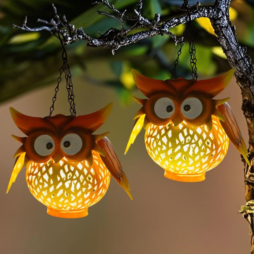 Starsoul Paquete de 2 faroles solares colgantes de búho impe
