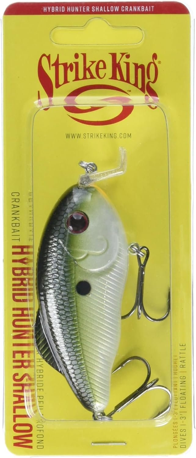Dynamo de aguas poco profundas: el Strike King Hybrid Hunter Shallow está hecho para poner peces en el bote. Con un pico en forma de L, este cebo de plástico duro se sumerge de 1 a 3 pies para esos peces súper poco profundos. Con un sistema de sonajero increíblemente fuerte y una gran acción de cmcaza cm cuando se desvía de la roca, la madera y la cubierta dura, el cazador híbrido llamará a los peces fuera de su escondite. Su patrón Muh Knee Shad es un productor de bajo probado COMPONENTES PREMIUM: El Hybrid Hunter Shallow de 3/4 onzas está armado con ganchos agudos de tamaño 4 y 6 extremadamente afilados que tienen una potencia excepcional de penetración y sujeción. Sus ojos 3D reflectantes engañan a los graves más cautelosos y ayudan a sellar el trato en situaciones de aguas claras. Un acabado resistente al astillado significa que el Hybrid Hunter puede sumergirse en las rocas y golpear contra la cubierta dura sin afectar su esquema de color altamente detallado PRESENTACIÓN VERSÁTIL: Aunque este cebo fue diseñado para ser utilizado alrededor de la hierba, funciona en todas partes. Desde la vegetación hasta la madera y la roca, el Hybrid Hunter Shallow es un cazador de peces probado. Su característica de diseño clave es su versatilidad, sobresaliendo cuando se pesca como un crankbait tradicional, pero también funciona como un jerkbait, wakebait de buceo poco profundo, al arrancar la hierba como un señuelo sin labios. El Hybrid Hunter es realmente un híbrido de muchos señuelos Diseño experto: Innumerables años de experiencia en el agua y aportes directos de los pescadores profesionales más reconocibles y exitosos de la pesca han ayudado a Strike King a desarrollar los señuelos artificiales más efectivos para lubinas y otros peces de caza depredadores. Un extenso proceso de pruebas de campo y desarrollo de productos garantiza que cada señuelo Strike King esté listo para ayudarte a atrapar más peces y más grandes Pesca con confianza: cuando pescas con el Strike King Hybrid Hunter Shallow, pescas con confianza porque un cebo diseñado y fabricado por los expertos en señuelos de Strike King seguramente te ayudará a atrapar más peces cada vez que golpees el agua