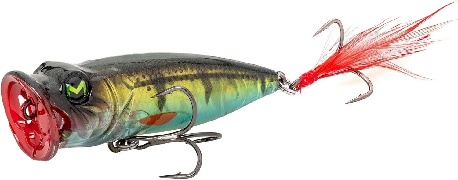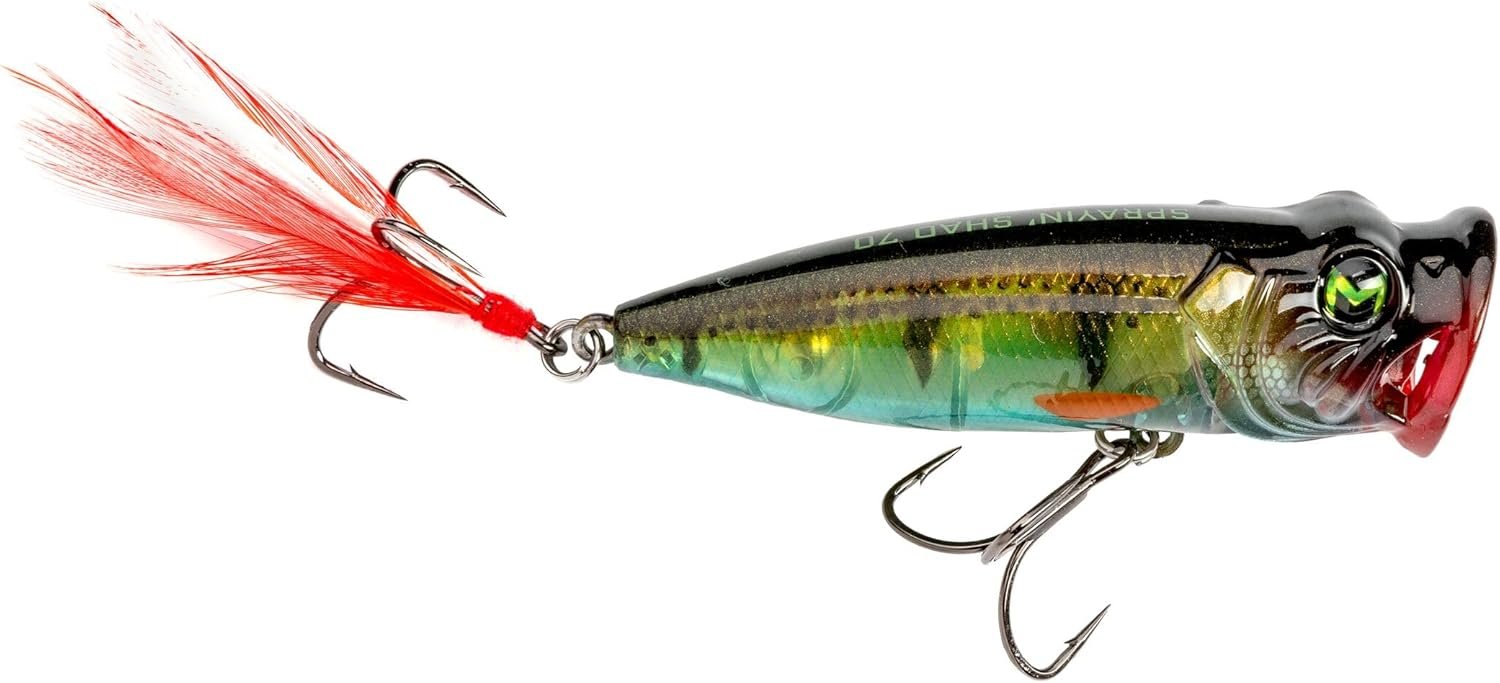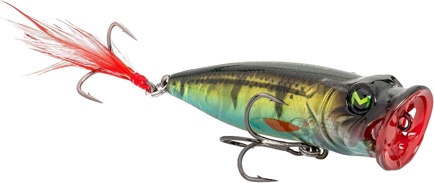 Nombre de modelo: Lew’s Mach Baits Sprayin’ Shad – Señuelo de pesca, Topwater Popper, diseño de branquias abiertas, Mustad KVD Elite – Ganchos cortos de triple agarre