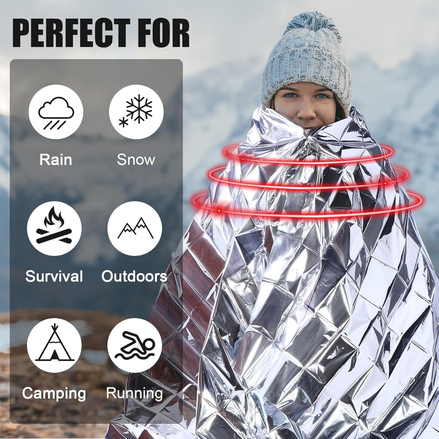 Amplio paquete para casos de emergencia: nuestro paquete ofrece 100 mantas térmicas de emergencia y 100 pares de calcetines, este juego de cantidad suficiente es ideal para organizaciones que se ocupan de casos de alta necesidad como ayudar a las personas sin hogar o abordar situaciones de emergencia a gran escala Especificaciones de tamaño: nuestras mantas de emergencia tienen un tamaño generoso de aproximadamente 129,5 cm x 210,8 cm / 130,0 cm x 210,1 cm, para satisfacer casi todos los tamaños de adultos, nuestros calcetines térmicos son de tamaño 10-13, se adaptan a tallas de zapatos de hombre de EE. UU. de 7 a 12, elásticos y cómodos para adaptarse a tus pies Materiales de calidad: nuestras mantas de emergencia están hechas de una capa robusta de película de poliéster con película de polietileno chapada en aluminio, esta combinación garantiza resistencia y buenas capacidades térmicas, que se pueden plegar y almacenar para reutilizarse o cortar según sea necesario, y es un accesorio práctico de tu kit de supervivencia al aire libre Cómodos de llevar: nuestros calcetines están hechos de una cómoda mezcla de poliéster para mayor durabilidad y calidez, suaves y agradables al tacto, transpirables, absorben la humedad, cómodos al tacto, lo que te ofrece una agradable experiencia de uso Amplia gama de usos: nuestro generoso paquete de 100 mantas térmicas y 100 pares de calcetines es ideal para organizaciones de apoyo a personas sin hogar, estos proporcionan calidez y comodidad, esencial en condiciones climáticas adversas, contribuyendo al bienestar de los menos afortunados