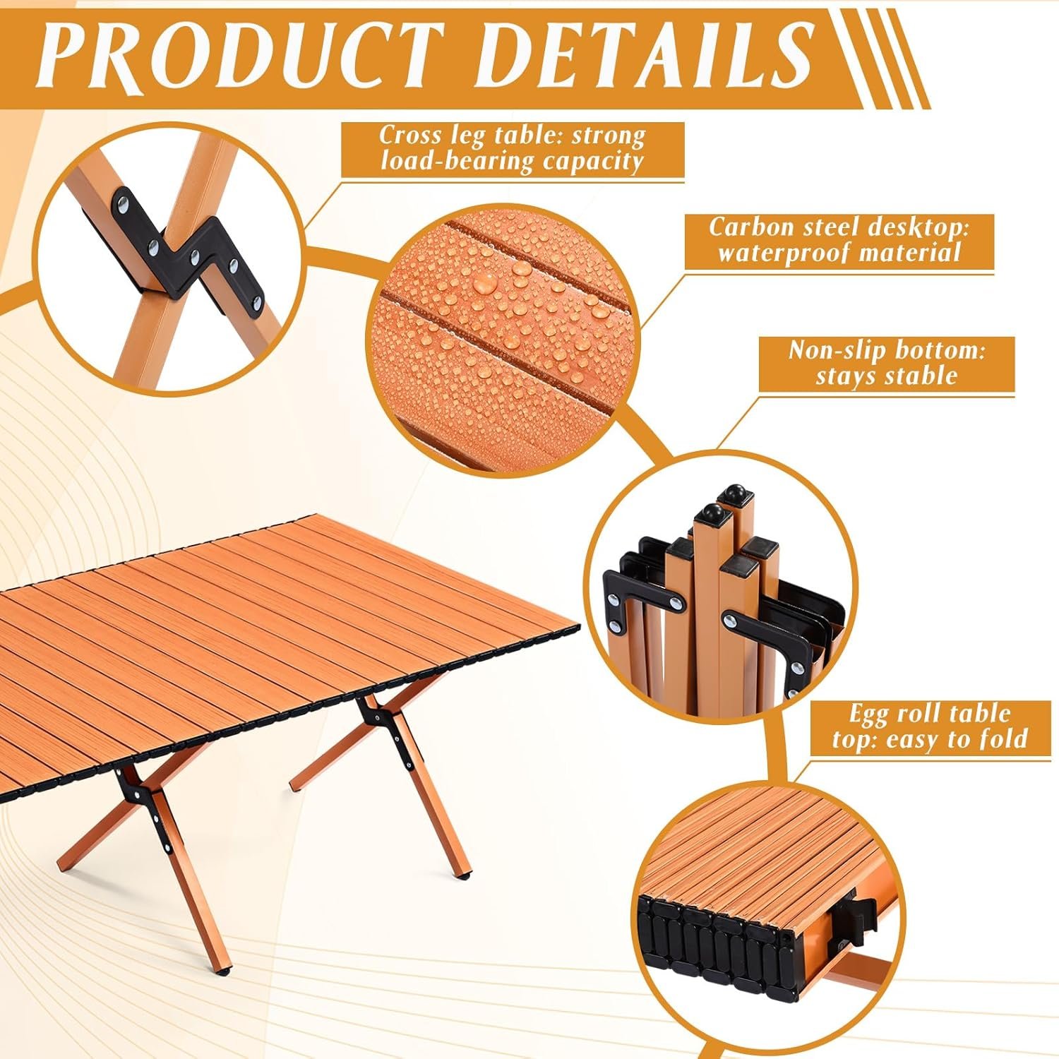 Mesas de camping de gran tamaño: nuestra mesa de picnic plegable mide aproximadamente 116,1 cm x 59,9 cm x 45,0 cm, que son lo suficientemente grandes como para ser mesas de picnic bajas, adecuadas para que toda la familia disfrute de aperitivos y cócteles mientras disfruta del tiempo al aire libre, la mesa de picnic plegable también tiene alturas ideales para combinar con la mayoría de sillas de camping Almacenamiento plegable: el marco de mesa de picnic bajo para exteriores y la parte superior de la mesa se pueden expandir y retraer de nuevo, cuando se pliega, el volumen se vuelve más pequeño y se puede almacenar en la bolsa de almacenamiento incluida, la bolsa de almacenamiento puede contener todos los artículos, lo que puede ayudar a mantenerlo en buenas condiciones cuando se almacena y viaja Material resistente: nuestra mesa plegable para acampar ligera está hecha de acero al carbono de calidad, ofreciendo una construcción gruesa y duradera; la base de la mesa en forma de cruz garantiza la estabilidad sin sacudidas, mientras que la gran área de escritorio cuenta con una fuerte capacidad de carga, impermeabilidad y larga vida útil; la superficie y las patas también están cubiertas con una película protectora para evitar arañazos durante el transporte; retira la película al recibirla Ligeras y portátiles: las mesas de picnic bajas plegables son ligeras y muy compactas cuando están plegadas; su tamaño reducido se adapta a cualquier lugar y puede caber en una mochila o equipaje, ahorrando espacio valioso en equipo de campamento o en el maletero de tu automóvil, adecuado para uso al aire libre Regalo ideal: esta mesa de picnic plegable y portátil ofrece una variedad de usos para diferentes ocasiones; su función plegable la hace ideal para actividades al aire libre como viajes, senderismo y campamento. También es una buena adición a un jardín, sala de estar o espacio de ocio, ideal para guardar bebidas, aperitivos y más; su práctico diseño también es un maravilloso regalo del día de San Valentín, ideal para crear picnics románticos o ambientes acogedores en interiores con seres queridos