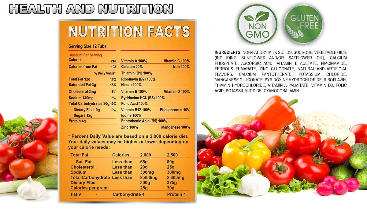 Suministro de alimentos ‘por si acaso’: Survival Tabs SHTF Bugout Food está diseñado para emergencias como desastres naturales, proporcionando nutrición esencial en un tamaño compacto. Nutrición diaria completa: proporciona el 100% de 15 vitaminas y minerales esenciales para mantener tu cuerpo nutrido en situaciones de supervivencia. Ingredientes de alta calidad: fabricado con proteínas premium, sin gluten y sin OMG para garantizar una nutrición de alta calidad. Compacto y portátil: ligero y ahorra espacio, perfecto para kits de emergencia, bolsas de insectos o suministros de supervivencia personal. Mantiene a una persona durante 60 días: un paquete combinado puede sostener a una persona hasta por 60 días, según el consumo promedio (las necesidades individuales pueden variar). Detalles de la porción: 4 botellas con 180 tabletas cada una; 12 tabletas masticables por porción; 20 calorías por tableta. Dimensiones y peso del producto: cada botella pesa aproximadamente 1.8 libras; las dimensiones de la botella son 19,1 cm de largo x 12,7 cm de ancho x 7,0 cm de profundidad. 2 botellas de vainilla, 2 botellas de chocolate
