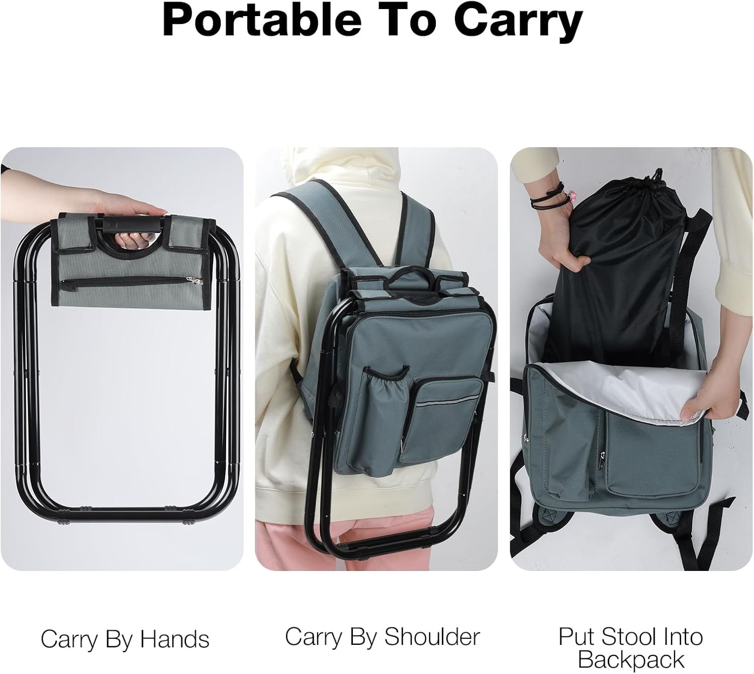 Multifuncional 3 en 1: Tiene las funciones de mochila, enfriador aislado y taburete de campamento. Este diseño multifuncional proporciona un almacenamiento cómodo, modo de transporte cómodo y asiento relajante. Estructura plegable y plegable: con una estructura plegable, la mochila del taburete se puede plegar en una bolsa de transporte de 35,6 cm* 17,8 cm* 7,6 cm, lo suficientemente compacta como para poner en la mochila. Sillas de mochila portátiles para adultos: ¡Llévala y haz un viaje en cualquier momento! 2 cómodas correas de hombro de la mochila liberan tu mano y proporcionan comodidad y comodidad al llevar. Además, hay un bolsillo para guardar las correas de los hombros cuando no se utiliza. Enfriador extraíble y grande: con capacidad de 15L, el compartimento más fresco adopta el interior aislado de material PEVA. Poner algunas bolsas de hielo puede mantener la comida y la bebida fría y fresca hasta 6 horas. Además, hay un bolsillo para botella de agua y un bolsillo frontal con cremallera para teléfono celular, llaves y otras pertenencias. Versatilidad: Con un peso ligero de 3 libras, este taburete te permite tener un asiento disponible dondequiera que vayas. Es adecuado para acampar, pescar, cazar, escalar, senderismo y cualquier otra actividad al aire libre que se te ocurra y será un regalo perfecto para los entusiastas del aire libre.