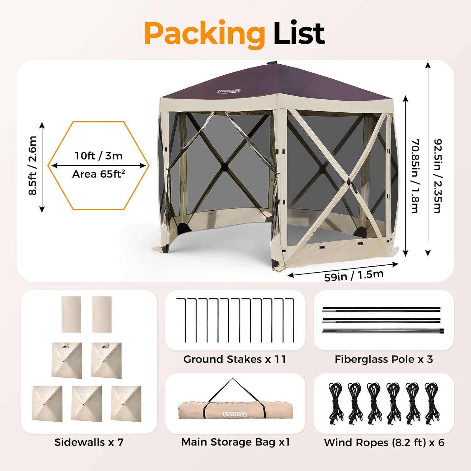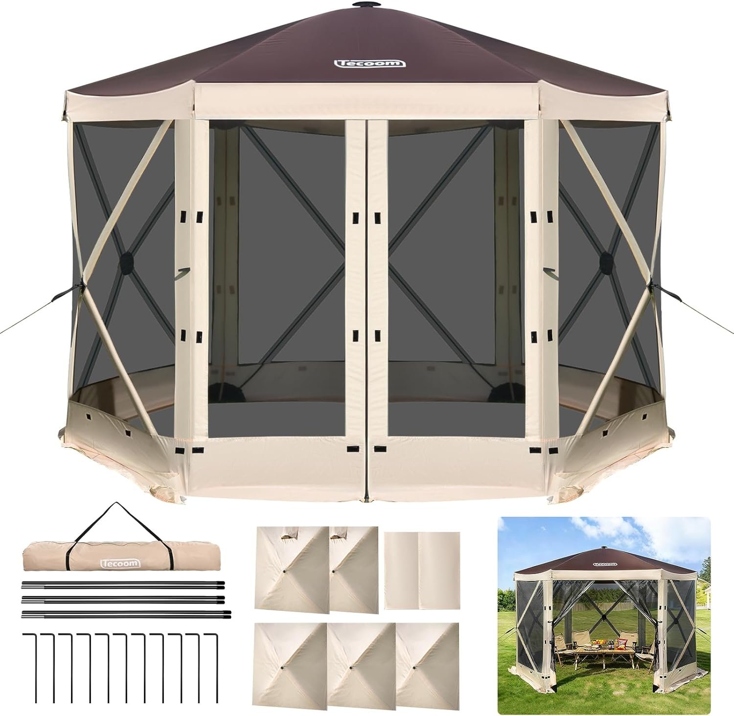 Tecoom Tienda de campaña con 6 lados desplegable, pantalla i
