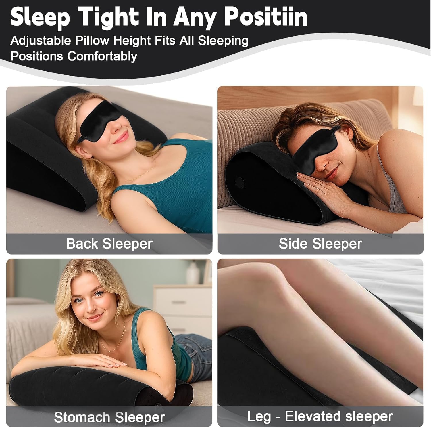 Usos específicos del producto: Other inflatable wedge pillows for legs, inflatable wedge for sleeping in bed, lightweight inflatable wedge pillow, travel wedge pillow for sleeping, wedge pillow for side sleeper