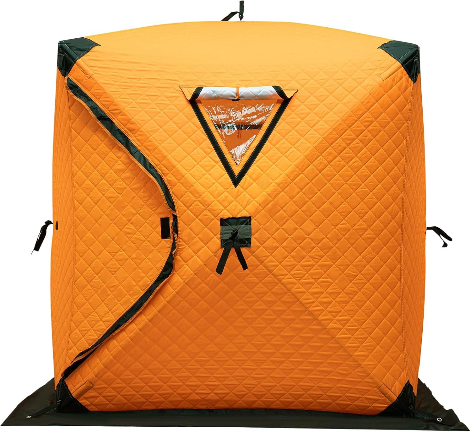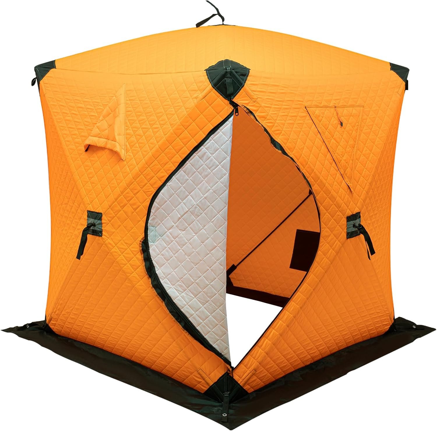 Tela Oxford duradera 210d y varillas de fibra de vidrio: tienda aislada que resiste la lluvia, el viento y la nieve. Construcción robusta y resistente al desgarro que garantiza un uso confiable a largo plazo para todas las condiciones de pesca Diseño cuidadoso y fácil de usar: refugio de pesca en hielo Puerta en forma de D con cremalleras dobles para un fácil acceso. Dos ventanas (cinta adhesiva + cubiertas enrollables) ofrecen gran luz; esquinas gruesas reforzadas que aumentan la durabilidad Amplia capacidad para 1-2 personas: tienda de campaña de invierno aislada de 145,0 cm x 145,0 cm x 165,0 cm, tamaño para 1-2 personas más equipo de pesca. Perfecto para pescar con amigos, compartir la alegría de pescar al aire libre Protección y estabilidad completas: tiendas de campaña aisladas con dobladillo extendido + algodón grueso de 3 capas para calidez y transpirabilidad (ideal para pesca en hielo/picnics). Cuerda resistente al viento + anclajes de hielo que lo mantienen estable en climas ventosos Fácil instalación y almacenamiento portátil: refugio de pesca en hielo accesorios completos + estructura simple que permite la instalación individual. Diseño plegable con bolsa de transporte para un fácil transporte; se almacena de forma compacta sin ocupar espacio