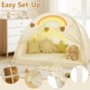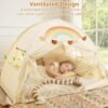 poliéster algodón Importado Tela duradera y suave con postes reforzados: Hecho de tela de poliéster y algodón suave, agradable al tacto, perfecta para uso en interiores. Postes de fibra de vidrio resistentes que garantizan una larga durabilidad. Se adapta cómodamente a colchones individuales estándar (195,1 cm x 100,1 cm x 125,0 cm) Diseño de doble puerta y fácil acceso: cuenta con puertas dobles para una entrada y salida convenientes desde cualquier dirección. Apertura y cierre suaves desde el interior y el exterior, por lo que es fácil para los niños usarlo de forma independiente Uso versátil para jugar y dormir: ideal para camas individuales o como tienda de campaña. El color neutro combina perfectamente con la decoración de cualquier habitación. Perfecto para crear un ambiente acogedor para dormir o un espacio de juego imaginativo Incluye accesorios divertidos: viene con luces de estrella y banderines para mejorar la experiencia de juego. Incluye una bolsa de almacenamiento compacta para un fácil almacenamiento y transporte Configuración rápida y sin herramientas: Fácil de montar en minutos sin necesidad de herramientas. El diseño compacto de plegado permite un almacenamiento y viaje convenientes. Adecuado para familias ocupadas en movimiento