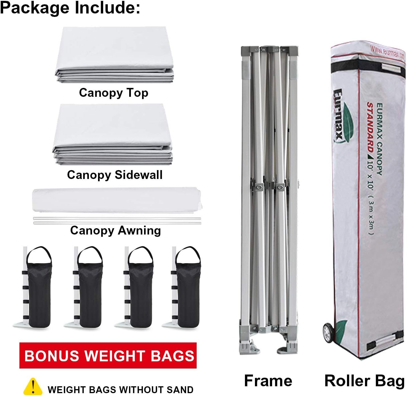 Durabilidad: nuestra tienda de campaña de dosel de 10 pies x 10 pies cuenta con un marco de acero con acabado en polvo de tono martillo con una estructura de armadura completa para mayor estabilidad, proporciona un soporte excepcional, lo que hace que nuestro toldo sea una opción confiable para cualquier evento al aire libre. Comodidad al aire libre: la tela resistente está certificada como retardante de fuego CPAI-84, NFPA 701 y ULC S109, recubierta de poliuretano para bloquear el 99% de los rayos UV y costuras selladas para una resistencia excepcional al agua. 4 paredes laterales extraíbles con cremallera mejoran la versatilidad y utilidad de nuestro toldo. El toldo extendido proporciona refugio y cobertura adicionales para tus invitados o equipo. Listo para eventos: ya sea que estés organizando una fiesta en tu patio trasero, un puesto de vendedores en una feria o un evento corporativo, esta tienda de campaña con toldo está a la altura. Crea un retiro al aire libre espacioso y cómodo para tus invitados, perfecto para fiestas, bodas, picnics o ferias comerciales. Fácil instalación: con el último sistema de bloqueo de pulgar y tres posiciones de altura, montar y quitar el toldo es muy fácil, y puedes ajustar la altura de espacio libre de 10.5 pies a 11.1 pies. Disfruta de una configuración rápida, para que puedas concentrarte en disfrutar de tu evento sin el estrés de un montaje complicado. El paquete incluye: 1 marco de toldo comercial de 10 pies, 1 toldo desplegable de 1 x 10 pies, paredes laterales de 3 x 10 pies, 1 pared de puerta central de 10 pies, 1 bolsa con ruedas, 4 bolsas de peso adicionales y 1 toldo mejorado de 10 pies (toldo extragrande: añade aproximadamente 24 pies cuadrados de sombra a tus amigos o clientes).