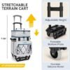 Compartimento doble: el enfriador 2 en 1 con ruedas es la capacidad espaciosa para empacar todas sus necesidades, que tiene un compartimento principal a prueba de fugas para bebidas, cerveza, frutas, bolsas de hielo. Y el compartimento superior tiene suficiente espacio para artículos secos, como comidas, aperitivos, etc. Dimensiones de las ruedas más frías: 47,0 cm x 27,9 cm x 52,7 cm. Diseño aislado y a prueba de fugas: el aislamiento interior del enfriador sobre ruedas está engrosado con espuma y el forro de EVA a prueba de fugas funciona junto para mantener los alimentos y bebidas frías durante horas sin preocuparse por fugas (hasta 12 horas con paquetes congeladores). La tela está hecha de Oxford para mayor durabilidad y rendimiento. CARRO Y RUEDAS TODO TERRENO: El mango puede extenderse hasta 100,3 cm H (3.3 ft) y bloquearse en 3 posiciones, diseñado para adultos. Junto con una base extensible triple y extra ancha y ruedas versátiles de gran tamaño pueden soportar el peso de un adulto. Cómodo de transportar: cuando no está en uso, el cuerpo principal se puede plegar en el subcuerpo superior para ahorrar espacio. Al mismo tiempo, la capa superior se puede utilizar por separado como bolsa de almuerzo y cazuela en la vida diaria. Múltiples bolsillos: incluye 1 compartimento principal grande, 1 compartimento superior, 1 bolsillo frontal grande con cremallera, 1 pequeño bolsillo frontal transparente, 2 bolsillos laterales grandes de tela.