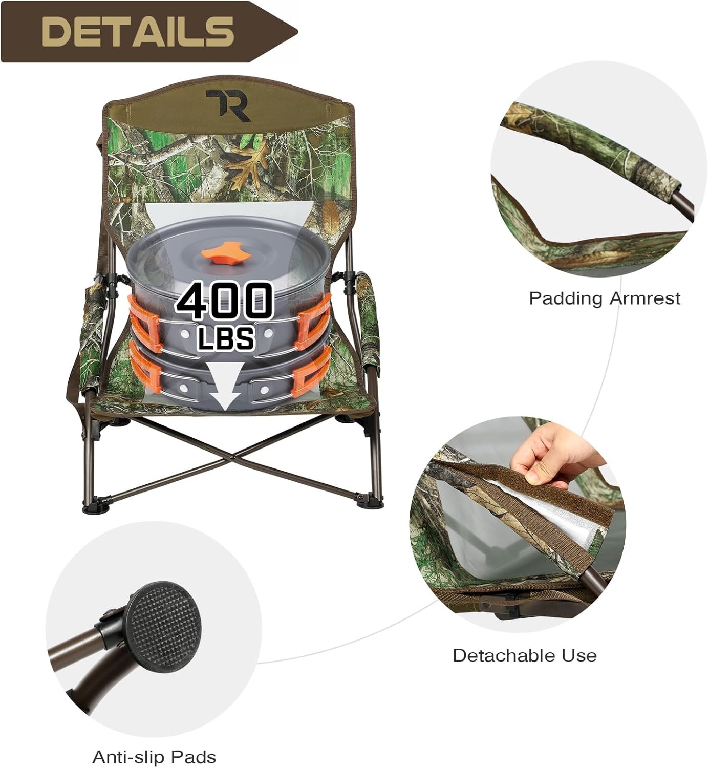 Acero fuerte y material de alta calidad: nuestra fábrica se centra en el control de calidad, cada tela y material está estrictamente seleccionado. Un marco de acero firme y un material resistente te permiten utilizar una silla de caza de perfil bajo con un marco de metal duradero muchas veces y de larga duración, porque somos una fábrica especializada en el diseño, desarrollo y producción de muebles de exterior como sillas de caza o asientos Relajante reclinable de 110°: la mochila para silla de caza de pavo TR con respaldo es cómoda para descansar cuando cazas pavos, goves o simplemente descansas en la playa. La espalda reclinable de 110° te permite sentarte bajo el suelo y te permite inclinarte hacia atrás en un ángulo perfecto para relajarte y estirar las piernas. Correa y bolsa fáciles de transportar: la silla de camping baja se puede plegar pequeña pero abierta de gran tamaño, se puede llevar fácilmente para el transporte y almacenamiento en una bolsa de transporte, y también se puede llevar con las correas de hombro directamente para mayor comodidad. Aunque es un terreno relativamente bajo, estos asientos al aire libre para acampar pavo son muy cómodos y portátiles. CONSEJOS: Tenga cuidado con las rodillas cuando se levante. Gran opción para exteriores Solo tienes que llevarlo ahora para cazar, acampar, senderismo, la playa, incluso para cualquier actividad al aire libre. Esta silla plegable para exteriores es más baja que la silla de campamento promedio, pero puedes extender completamente tus piernas hasta el final, y el suelo funciona como el resto de tus pies, lo encontrarás muy cómodo, y tu espalda y piernas estarán muy relajadas. ¿Qué podría estar más cerca de la naturaleza que esto? Cómodo tamaño grande y ligero El amplio espacio de asiento de esta pequeña silla plegable de camuflaje con correas para los hombros es de 53,3 cm x 49,5 cm x 72,4 cm, solo pesa 6.42 libras, pero la capacidad de peso es de hasta 400 libras, lo que es muy cómodo de un niño a un fuerte cazador masculino adulto. Puedes estar seguro de tu compra con nuestro período de soporte inclusivo de un año, TR será responsable de nuestros productos y te hará satisfecho.