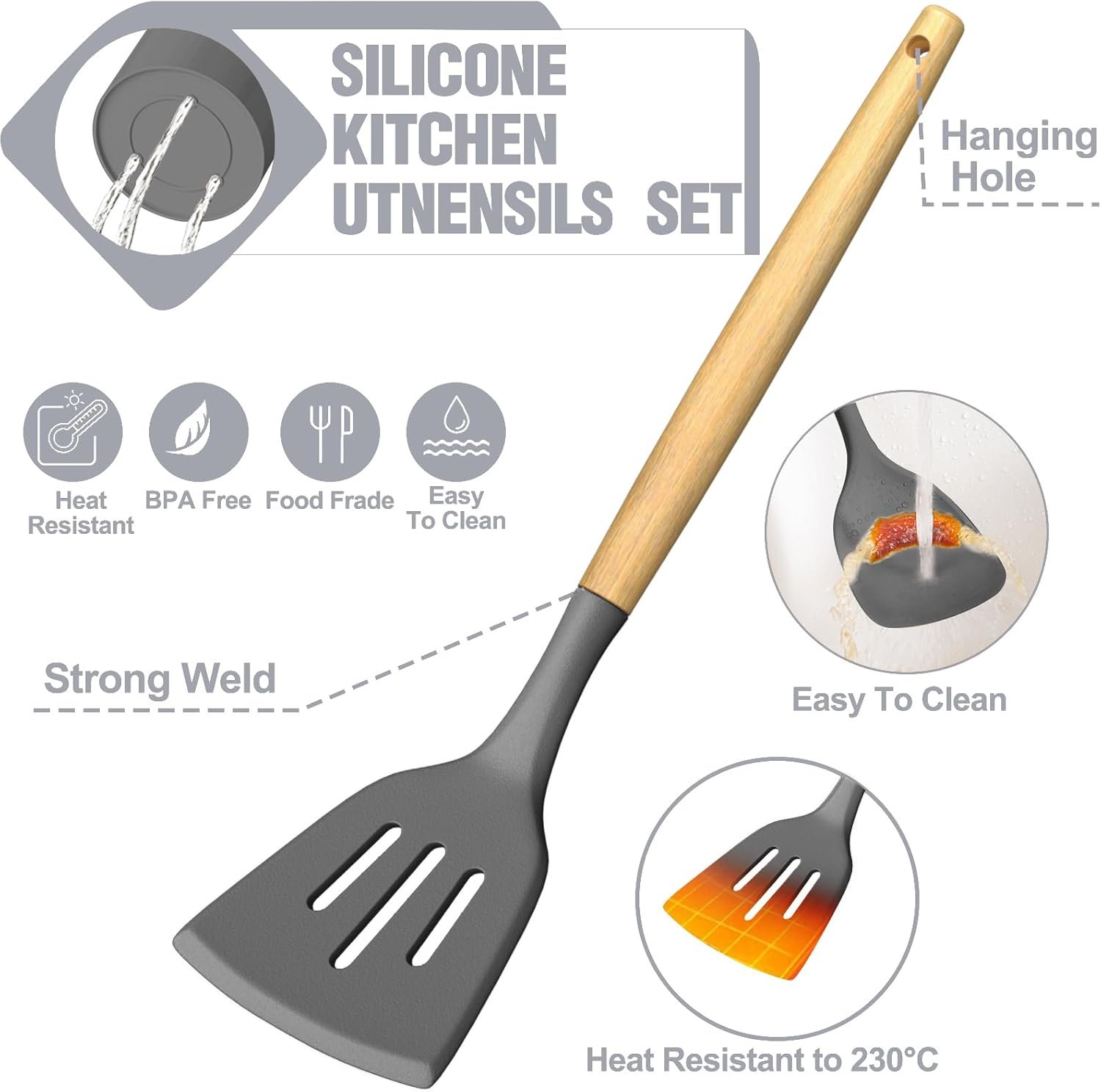Umite Chef Juego de utensilios de cocina de silicona, 34 pie