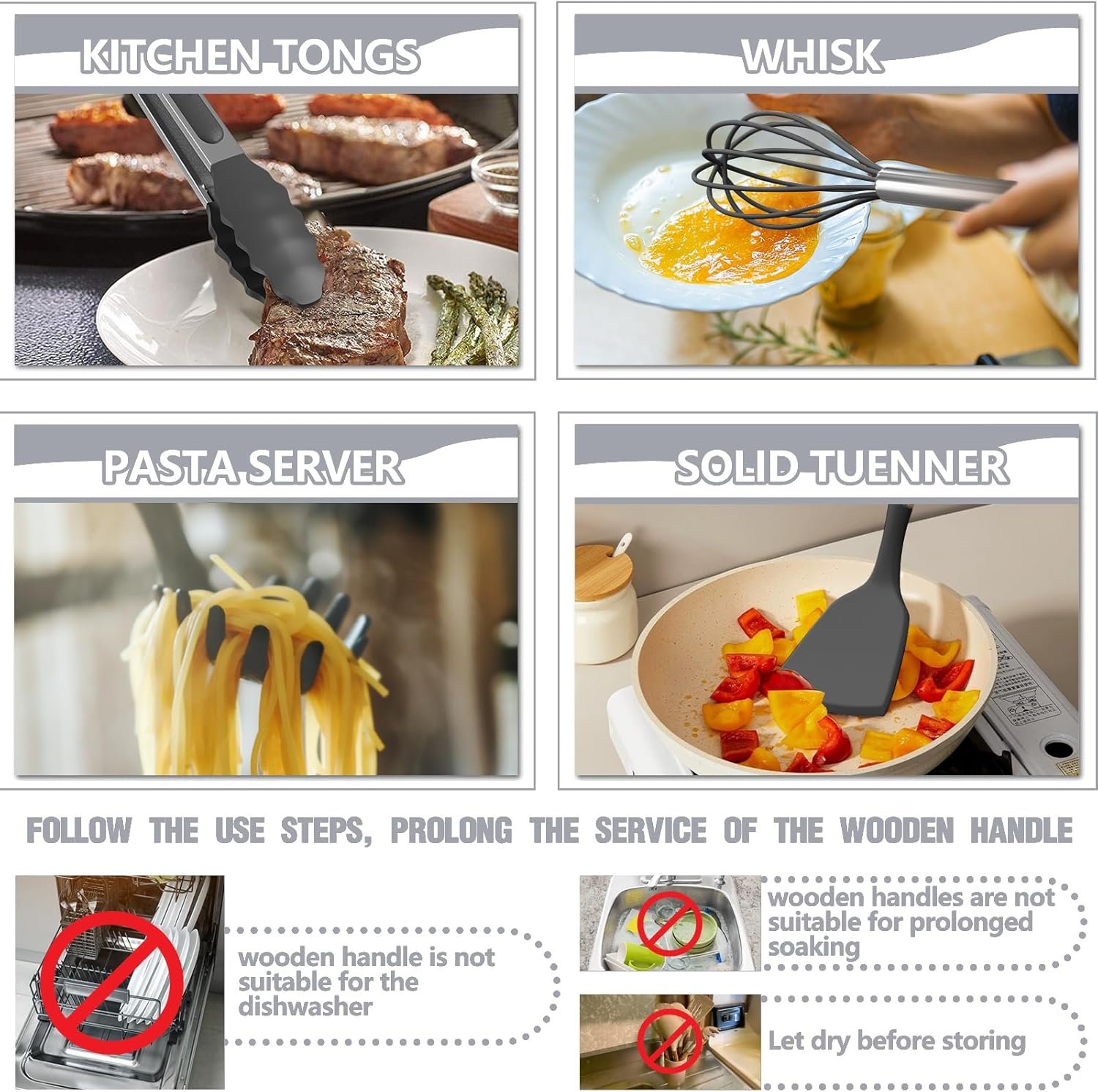 Juego de utensilios de cocina de 34 piezas con soporte: desde las cucharas de cocina diarias hasta la trituradora de ajos, este juego de utensilios de cocina de 34 piezas incluye todas las cosas de cocina que puedas necesitar para sacar a tu chef interior. Esto significa que no tiene que gastar dinero extra en herramientas repetitivas de utensilios. Este juego de utensilios de cocina incluye una espátula ranurada, cuchara ranurada, volteador, servidor de pasta, pinzas de cocina, rallador, tijeras, etc. Es un gran paquete de inicio para un primer apartamento Silicona suave resistente al calor, no se derrite Una de las mejores cosas de los utensilios de cocina de silicona Umite Chef es su capacidad para soportar el calor de forma segura, cada utensilio de cocina es resistente al calor hasta la friolera de 446 °F y no se derrite (incluso déjalo en la olla por un tiempo) y nuestro cabezal de utensilios ni siquiera se golpea ni se deforma incluso a esas temperaturas extremas. La silicona suave no raya los utensilios de cocina antiadherentes ni tus costosas sartenes Mango de madera vintage, fácil de limpiar: cada mango de madera está hecho de madera maciza que es antiquemaduras. Suave y cómodo al tacto, evita completamente la transferencia de calor durante el proceso de cocción. Ten en cuenta que cada mango de madera tiene un color y textura ligeramente diferentes. El diseño de una sola pieza elimina cualquier espacio donde la comida pueda quedar atrapada, lo que hace que la limpieza sea muy fácil. Ten en cuenta que debido al mango de madera, no recomendamos remojar en agua durante mucho tiempo o limpiar el lavavajillas Silicona de grado alimenticio sin BPA, sin olor: cada utensilio está hecho de silicona de grado alimenticio, sin BPA, se puede utilizar en cualquier tipo de alimento. El acero inoxidable está envuelto en el interior para mantener su forma y flexibilidad, asegurando que no se deforme. Y no retiene olores ni colores como utensilios de cocina de plástico. ATENCIÓN Antes del primer uso, el olor original desaparecerá después de que la silicona se remoje en agua y lo expone al aire durante aproximadamente 3 horas Gran juego de regalos: este juego de utensilios de cocina viene con todo lo que necesitas para empezar a cocinar. Un soporte para utensilios puede ayudarte a organizar bien tus herramientas de cocina. Si te mudas o simplemente necesitas un nuevo conjunto de utensilios de cocina muy recomendable. Perfecto para regalos de inauguración de la casa, regalos de boda, regalos del día de la madre, regalos de vacaciones y cualquier otra persona en tu lista de regalos