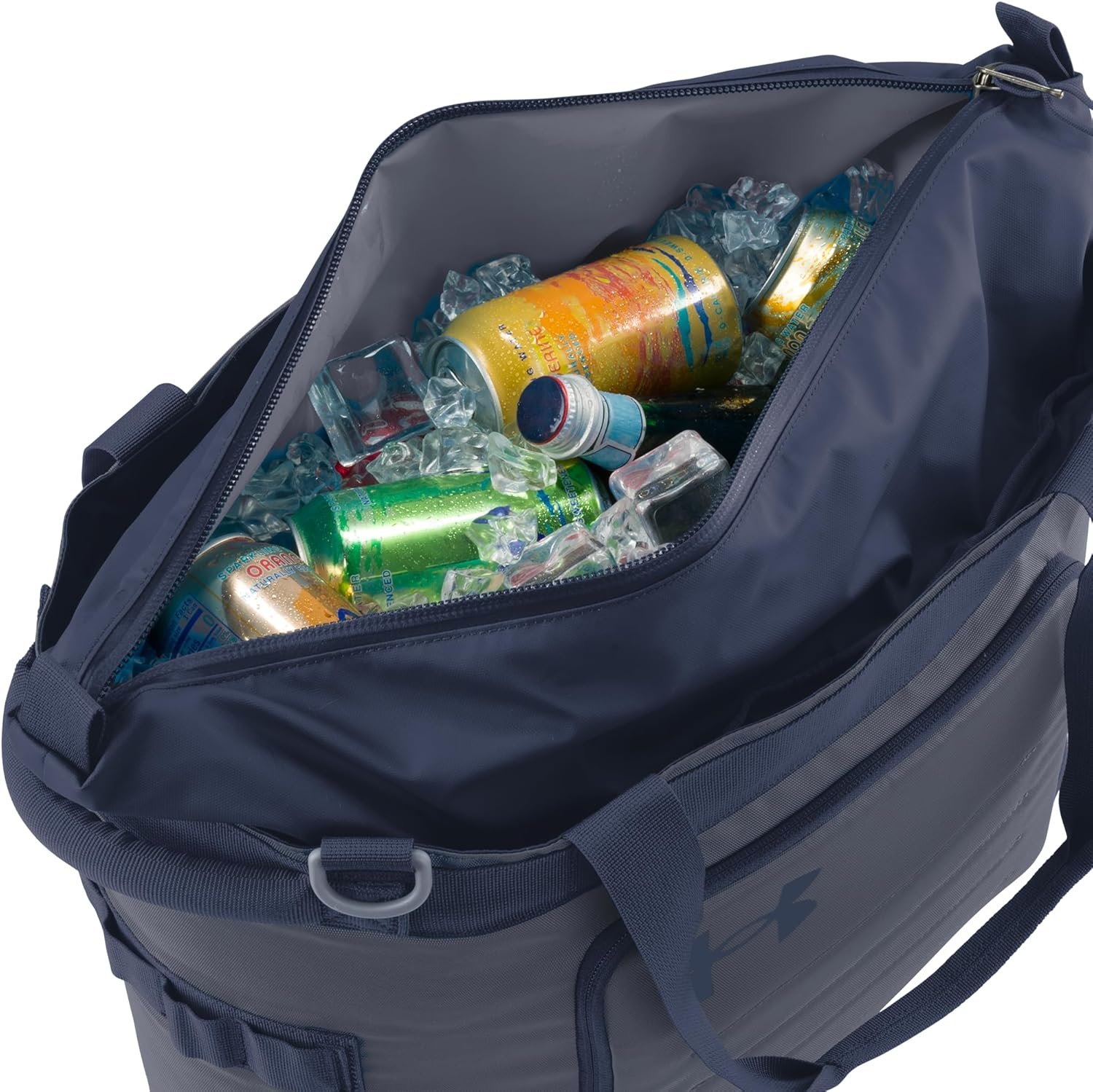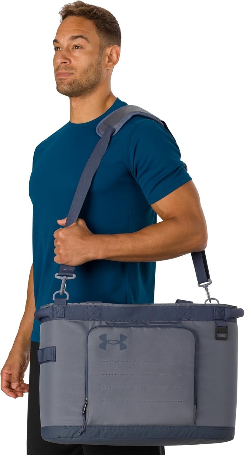 Enfriador de bolsa: correa de hombro cruzada ajustable y desmontable para un transporte rápido y sencillo. Grandes asas acolchadas con lengüetas reforzadas y anillos en D bilaterales para mayor comodidad. Parte superior expandible: capacidad para 30 latas con espacio para hielo. Agregue espacio de almacenamiento expandiendo la parte superior. También puede contener hasta 4 bloques de hielo UA Sideline de 1.5 libras. Almacenamiento: bolsillo frontal aislado con divisor de malla y gran bolsillo trasero de almacenamiento. Construcción fuerte: material exterior repelente al agua, base impermeable recubierta. Cuenta con puntos de pestañas exteriores. Sin BPA ni plomo. Dims: 34,0 cm de alto x 48,0 cm de ancho x 19,0 cm de profundidad. Peso: 2 libras. Versátil: úsalo en la playa, en eventos deportivos, para acampar o para viajar, lleva tus bebidas favoritas, cerveza, comida, almuerzo y mucho más.