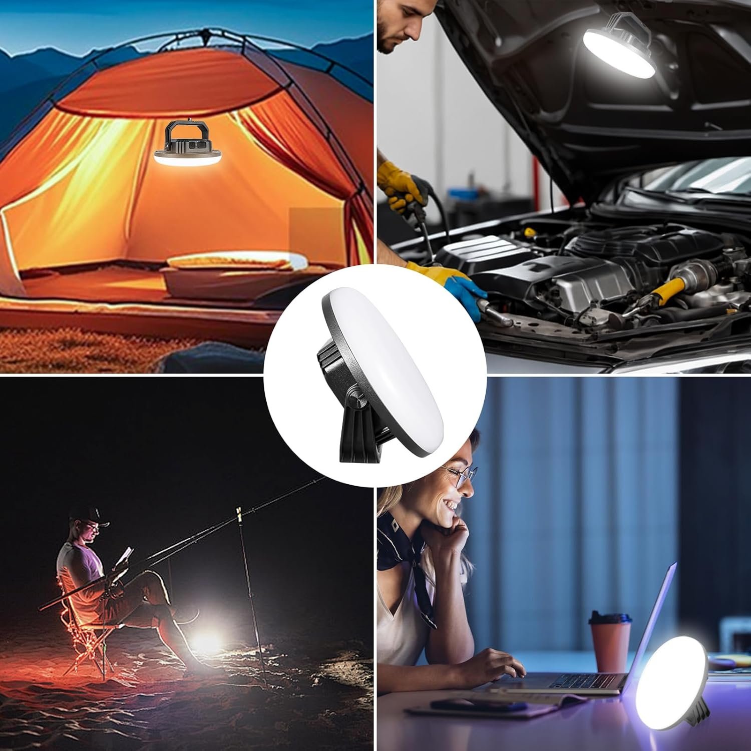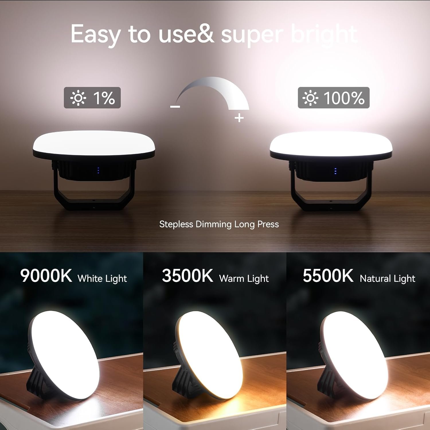 [180 LED y 4000 lm ultra brillante]: nuestra linterna LED cuenta con 180 LED de alto brillo con una potencia de fuente de luz de 42 W, que es el mismo brillo que las lámparas incandescentes de 150 W, ofreciendo una iluminación más suficiente y brillante en tienda de campaña o habitación en una noche oscura en situaciones de emergencia, se puede ajustar a un brillo máximo de 4000 lm para cubrir un área más amplia. linterna esencial para la noche más oscura y tormentosa. Nunca hay que temer a la oscuridad! [Recargable y banco de energía de 10000 mAh]: batería recargable integrada de 10000 mAh, recargable por puerto tipo C (cable USB C incluido), que dura aproximadamente 6 horas en brillo máximo. También se puede utilizar como fuente de banco de energía para alimentar tu teléfono u otros dispositivos en caso de huracanes o cortes de energía. [3 modos de iluminación y atenuación continua]: nuestras luces de campamento son regulables, presiona brevemente para cambiar entre 3 modos de iluminación (3500 K/5500 K/9000 K), pulsa durante mucho tiempo para ajustar el brillo, lo que te proporciona la iluminación perfecta para cualquier ocasión, ya sea un acogedor ajuste de fogata o una situación de emergencia brillante. [Diseño colgante y magnético]: nuestra linterna de campamento añade un gancho para colgar la lámpara en ramas o tiendas de campaña y fácil de llevar en tu mochila. El soporte puede girar 90 grados, lo que te permite elegir el ángulo de iluminación más adecuado, el potente imán integrado en la parte posterior puede fijarlo a la superficie de metal en cualquier lugar que desees. Resistente al agua IP65: nuestra lámpara de campamento es impermeable IP65 y resistente al polvo, lo que garantiza que puede soportar los elementos y ser tu compañero confiable en campamentos, senderismo o incluso durante huracanes.