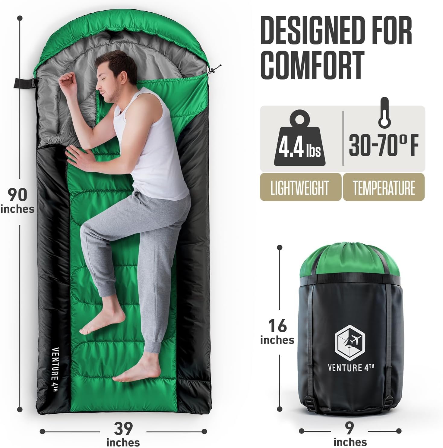 VENTURE 4TH – Saco de dormir para mochilero, ligero, c