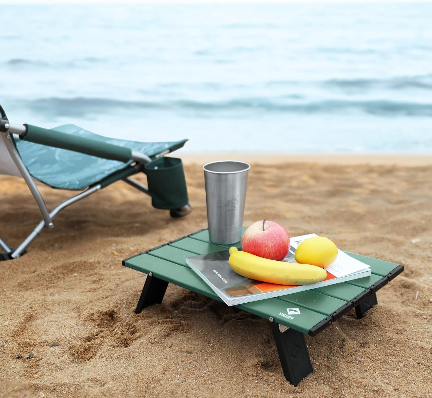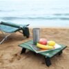 VILLEY Mini mesa de playa plegable portátil, mesa auxiliar d
