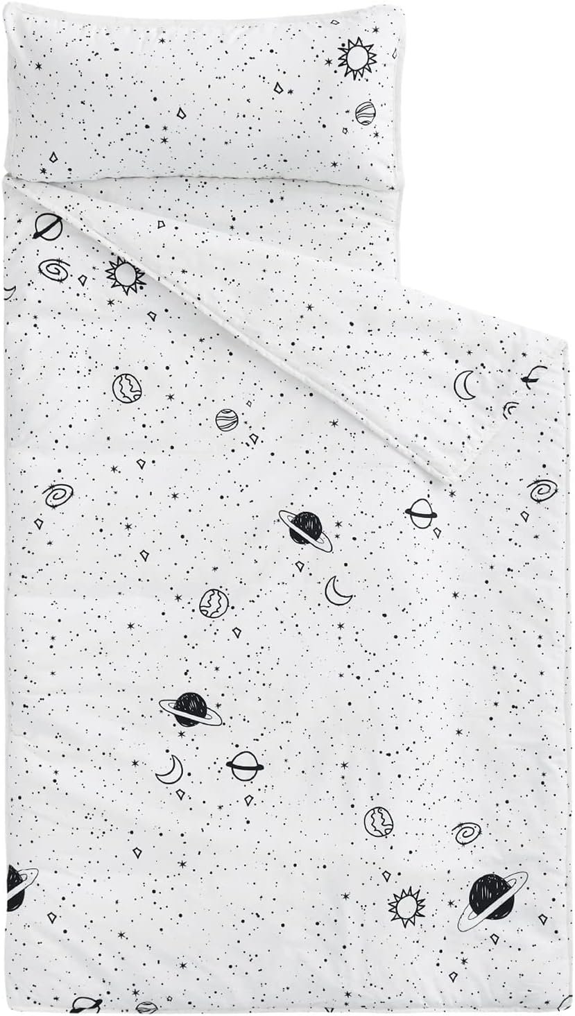100 % Algodon Importado Diseño espacial: Lánzate a sueños acogedores con esta alfombrilla para siesta temática de galaxia, con estrellas, planetas y cohetes para pequeños exploradores Comodidad todo en uno: mide 60 x 20 , esta alfombrilla para siesta integra una colchoneta para dormir, una manta y una almohada extraíble de 50,8 cmx 25,4 cm en un solo paquete; adecuado para niños de 3 a 6 años Comodidad portátil: enróllalo fácilmente con el cierre de y llévalo con el asa; tarjetas de identificación integradas para una fácil identificación; perfecto para preescolar, guardería y fiestas de pijamas Material de calidad: fabricado con tela 100% algodón y relleno de poliéster de alta calidad, este diseño transpirable y duradero garantiza una experiencia de sueño tranquila Fácil cuidado: simplemente retira el relleno de la almohada y lava la alfombrilla a máquina en agua fría en un ciclo suave, luego sécala en secadora a baja temperatura o al aire; evita usar blanqueador